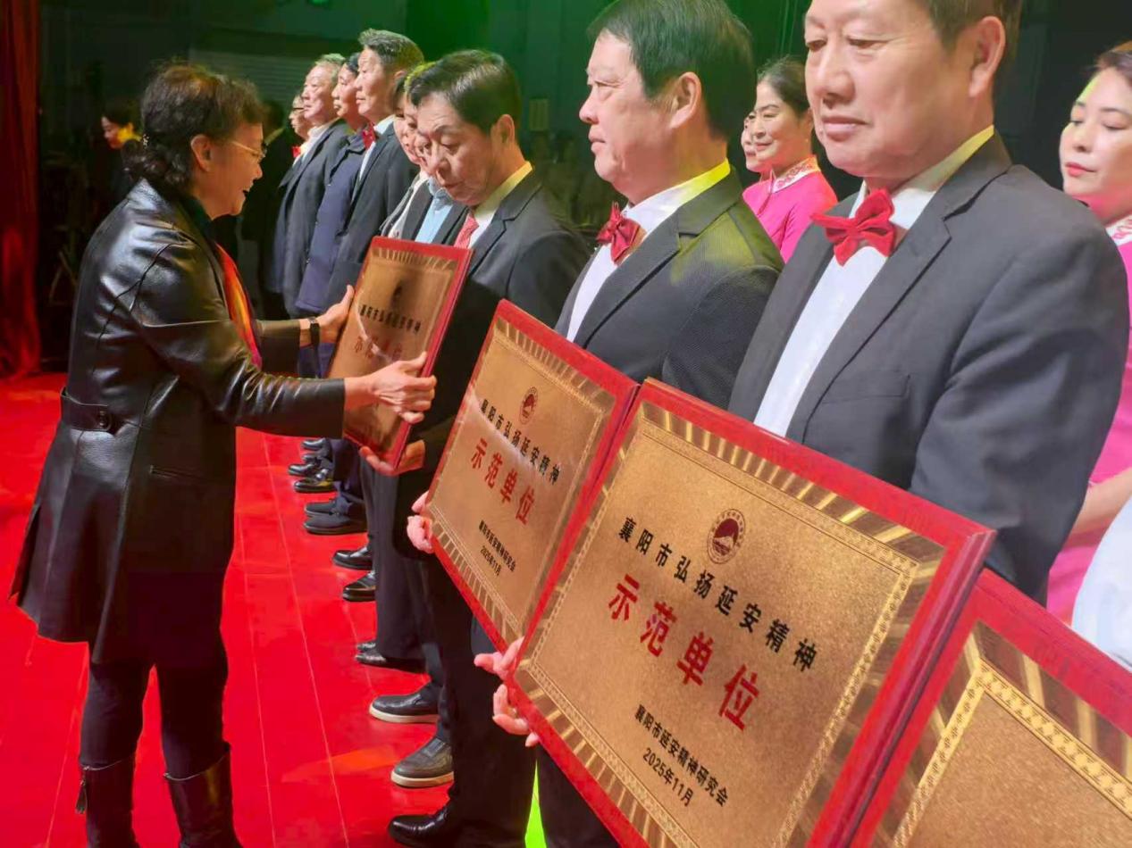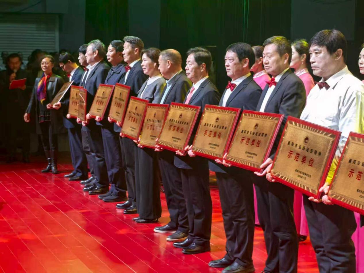 11月2日下午,湖北省襄阳市延安精神研究会宋双伟会长在襄阳剧院为15家“弘扬延安精神示范单位”进行表彰并授牌。