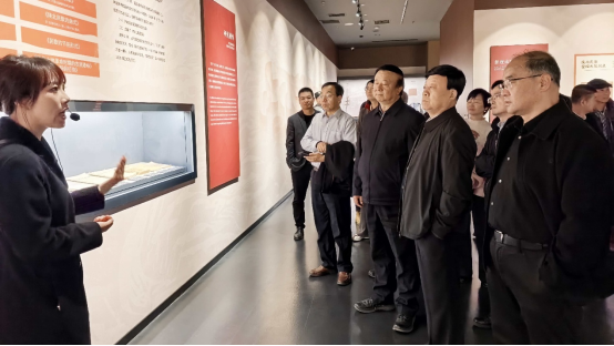 学习组首站来到陕北民歌博物馆,系统了解陕北民歌的发展历程,现场聆听多首原汁原味的陕北民歌与说书弹唱,深切感受陕北民俗文化的独特魅力。通过深入学习毛泽东同志《在延安文艺座谈会上的讲话》历史背景与精神内涵,成员们进一步了解到鲁迅艺术学院作为延安文艺战线的重要力量,在《讲话》精神指引下,集体创作了歌剧《白毛女》及传唱不衰的《东方红》等经典作品。陕北民歌博物馆以“弘扬红色历史、传承革命初心、传播优秀文化”为宗旨,坚持“以史育人、以歌化人”的教育理念,全方位展示陕北民歌的发展成果,普及相关知识,传承文化精神,引导广大干部群众坚定文化自信,意气风发走向未来。