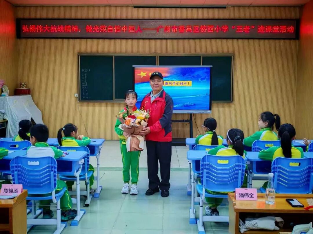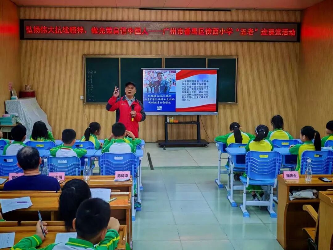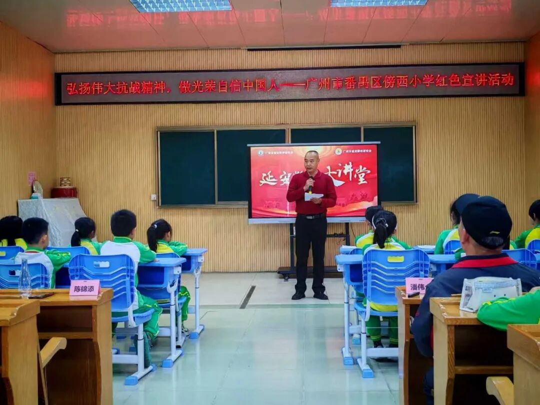 为传承红色基因,厚植家国情怀,广州市番禺区傍西小学于11月5日成功举办了以《弘扬伟大抗战精神,做光荣自信中国人》为主题的红色宣讲活动。此次活动旨在引导同学们铭记历史、缅怀先烈,深刻理解伟大抗战精神的内涵,激发作为一名中国人的光荣感与自信心,争做担当民族复兴大任的时代新人。出席本次活动的嘉宾和领导有:“延安精神宣讲团”讲师、番禺关工委潘伟全主任,广州市延安精神研究会青少委代表,傍西小学陈锦添校长等。