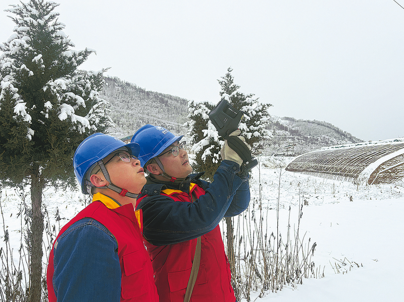国家电网陕西电力张思德(延安枣园)共产党员服务队队员开展雪后线路特巡