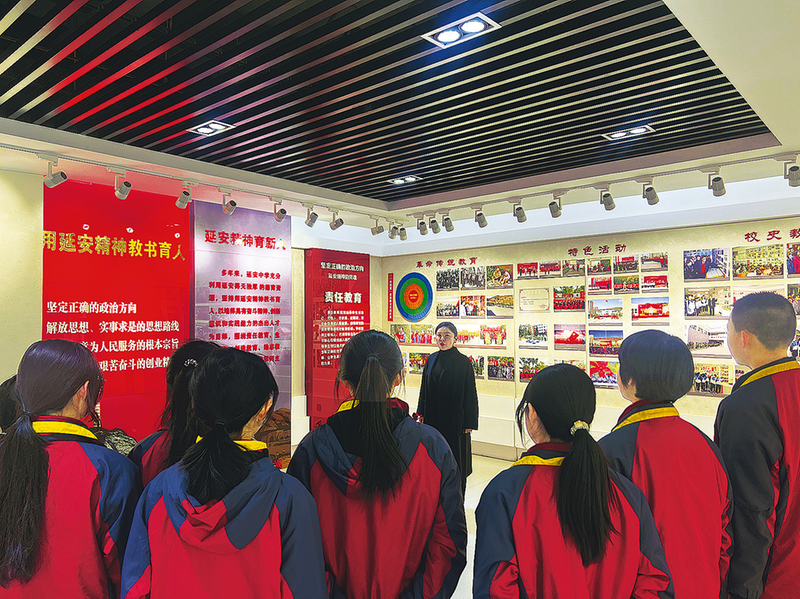 “参观校史馆,是每一位延中新生入学的第一堂思政课。”校史馆内,负责人蒋蕊无数次为学生讲述中国共产党创办的第一所中学——延安中学的历程。语文课上,教师牛一丹对《沁园春·雪》的解读,让学生们深刻体会到老一辈革命家坚定的理想信念和无所畏惧、勇往直前的革命豪情。该校初二学生高鹤还是“延安精神小小讲解员”,每到周末她就出现在杨家岭革命旧址,为游客讲述那段光辉历史。“每一次讲解,都是一次成长和洗礼。延安精神,帮助我扣好了人生的第一粒扣子。”高鹤说。