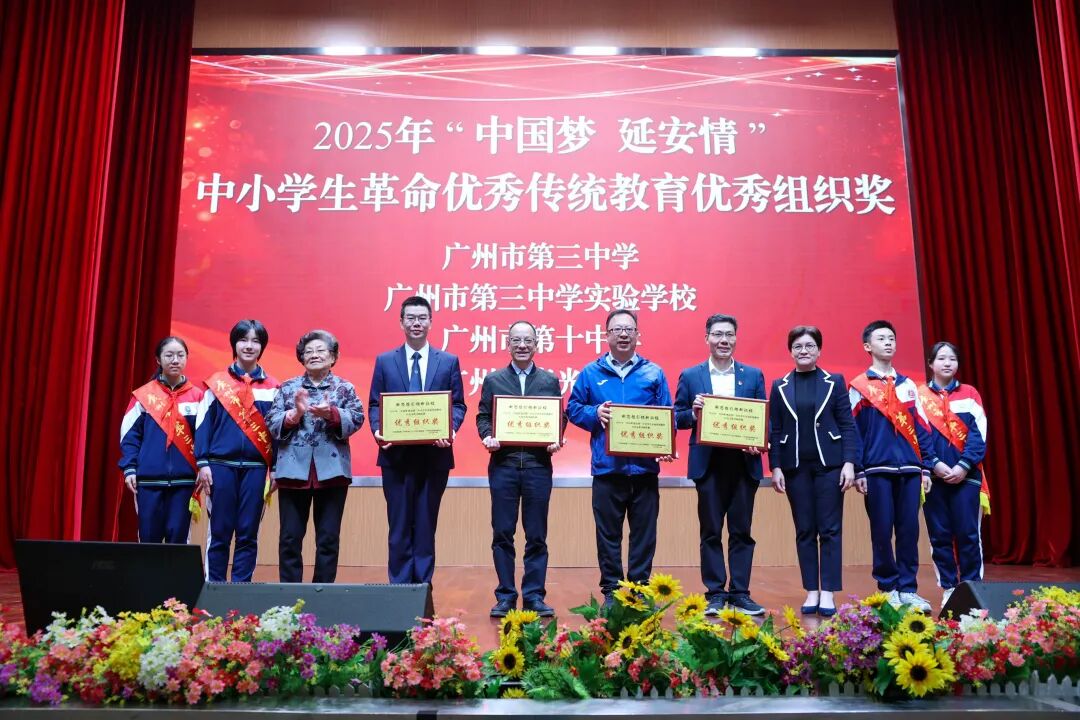 危淑玲副局长和陈芳芳副会长为“广州市第三中学、广州市第三中学实验学校、广州市第十中学、广州市真光学校”颁发了2025年“中国梦延安情”中小学生革命优秀传统教育优秀组织奖。