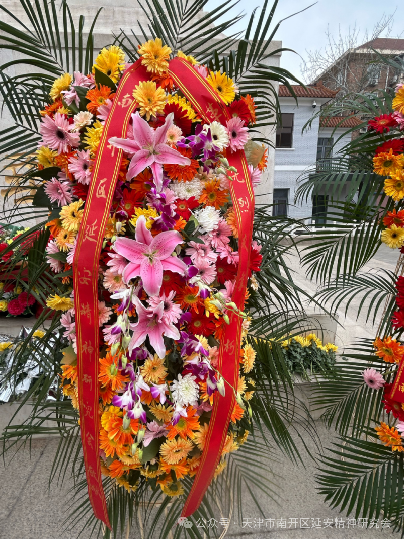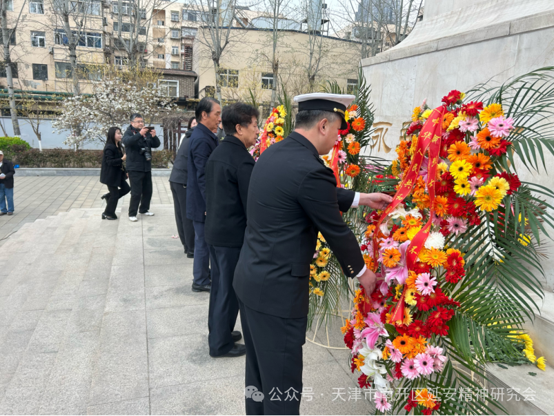 南开区延安精神研究会领导、区延会理事代表及南开海关、市关工委老劳模工作委员会相关领导上前,仔细整理花圈缎带,每一个动作都饱含着对先烈的深切缅怀与崇高敬仰。