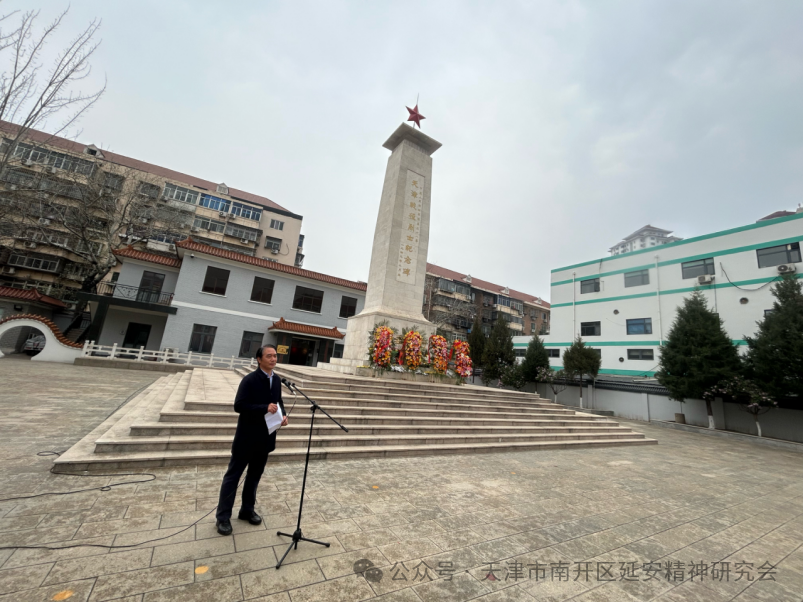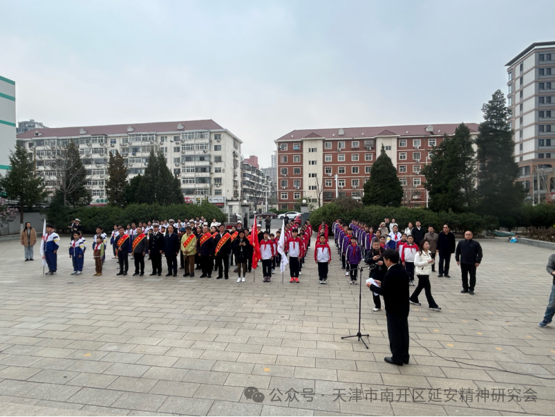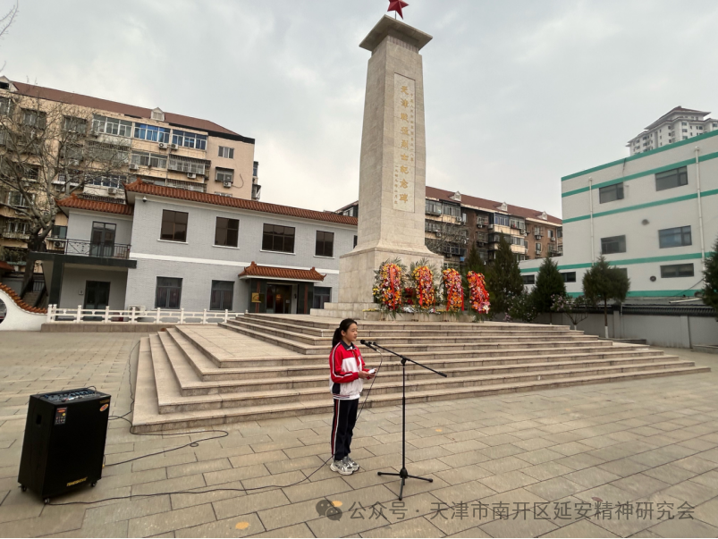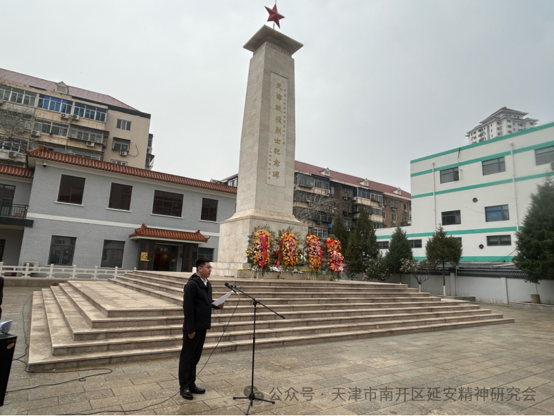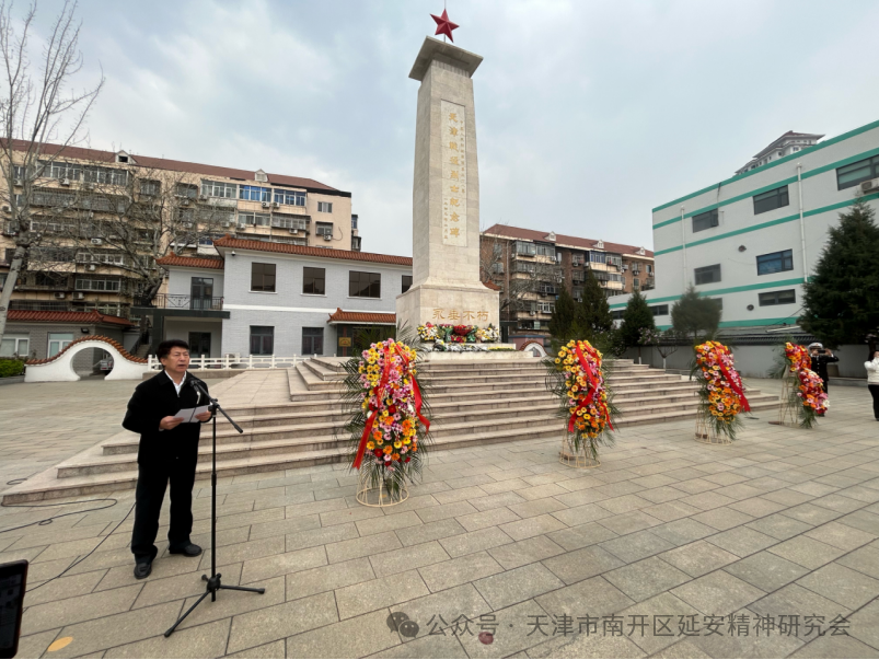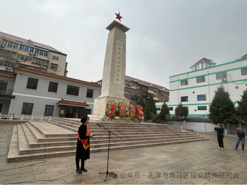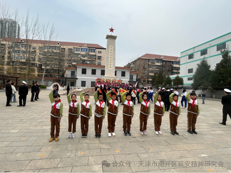 为深切缅怀革命先烈,传承红色基因,弘扬延安精神,引导青少年树立远大理想,4月3日上午,由天津市南开区延安精神研究会、天津市关下一代委员会老劳模工作委员会、南开区教育局、南开区退役军人事务局、南开海关共同组织的“清明祭英烈薪传延安魂争做新时代好少年”清明缅怀先烈主题活动,在南开区烈士陵园庄重举行,参加活动的有来自天津誉英学校、天津崇化中学、天津五马路小学的师生代表,天津市关工委老劳模工作委员会领导、老劳动模范、先进人物代表,南开区延安精神研究会会员代表、南开海关领导和工作人员代表,南开区退役军人事务局等有关方面人员代表.共100余人。天津市关下一代工作委员会老劳模工作委员会副主任葛英秋及老劳模代表等,南开区延安精神研究会会长朱树江,副会长赵月萍、李亚博、曹瑞杰、陈树前,南开区教育局副局长冯涛,南开海关副关长刘斌等相关单位负责同志出席活动。