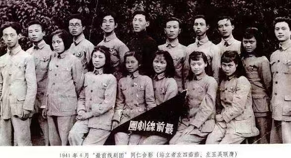 浙西抗战最前线剧团成员合影。站立者左四茹茄,左五吴联膺。