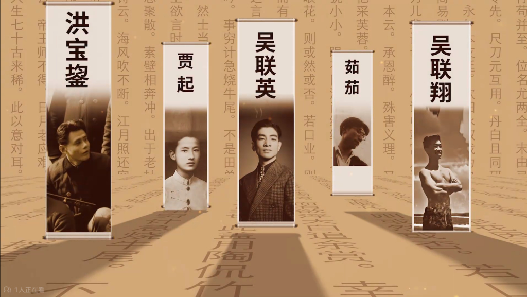 在纪录片《山水铭刻——重走父辈抗战路》的片头,吴榕美放上了她能找到的5位青年的照片——吴联膺、贾起、洪宝鋆、茹茄、吴联翔。团队用AI技术修复了老照片,让模糊的面容变得清晰,并在为纪录片撰写主题曲歌词后,修改了《浙西二中校歌》的歌词作为副歌,用AI谱了曲。“年轻人说,要用新方式让历史‘活’过来。”修复后的照片里,每一位青年都英气勃发、意气风发,可其中两人,已为理想与信念把年轻的生命永远留在了浙西。