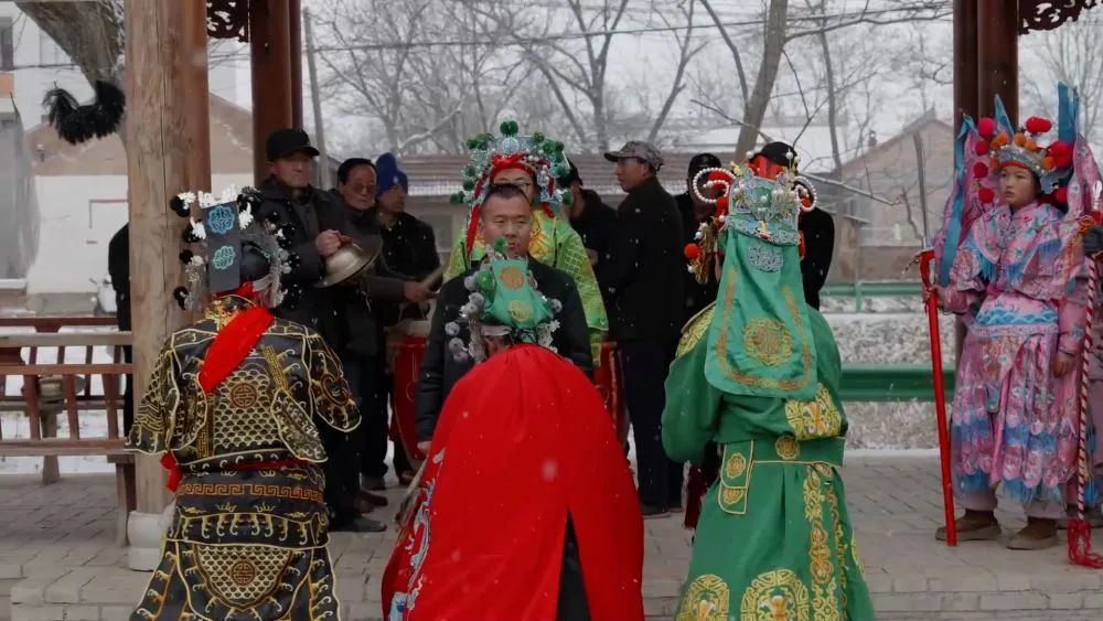在甘肃省平凉市灵台县独店镇何屯坡村,当地村民正在准备一种独特的民俗文化活动:武社火。与其他社火不同的是,武社火以“哑剧”形式表演,用武打片段演绎剧情,只打不唱,别具一格。