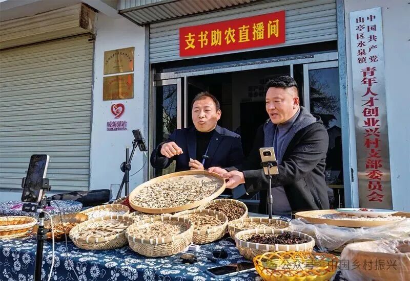 近年来,各地加强干部实践锻炼,组织党员干部在急难险重一线担当作为,提高推动高质量发展和服务群众本领。图为2025年12月29日,在山东省枣庄市“支书助农直播间”活动中,党支部书记直播销售当地土特产品,助力乡村振兴。人民图片杨青/摄