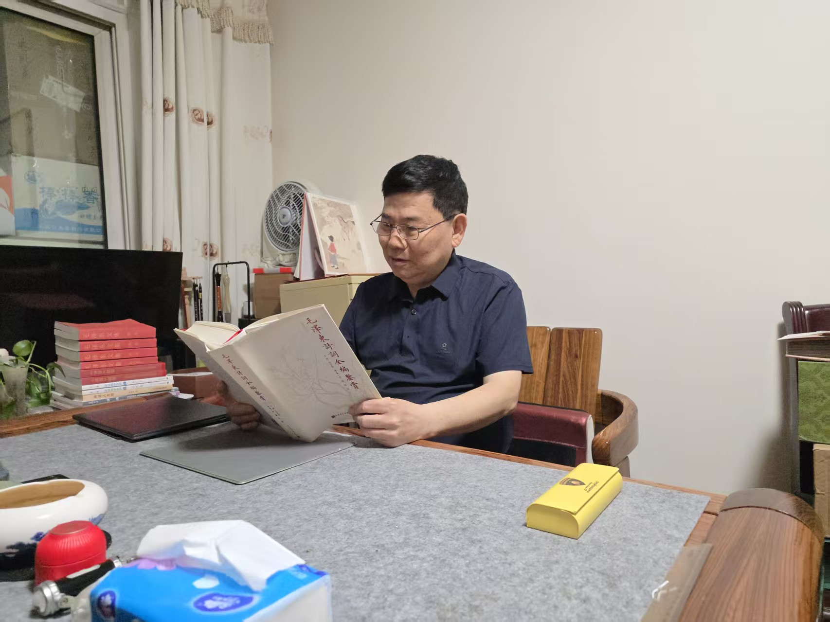 图为张国强认真研读学习毛主席诗词