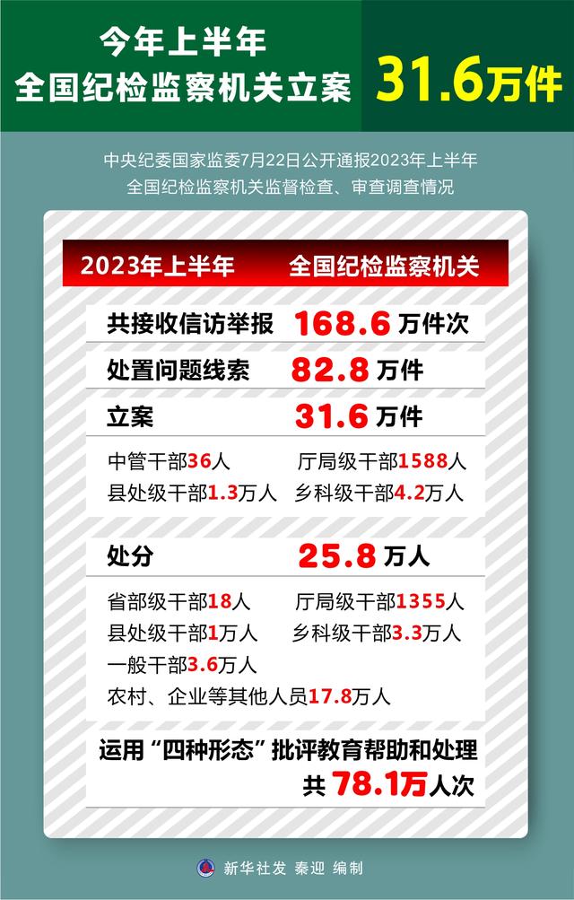 (图表)今年上半年全国纪检监察机关立案31.6万件