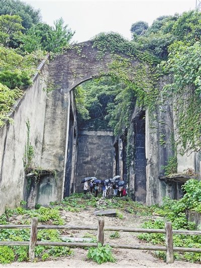 “这是岛上最大的一座毒剂储存仓库。毒剂库加上底座高11米,储存着剧烈的毒药。你们看,墙上焦黑色的痕迹,就是当年火焰喷射器留下的。”在一处遗迹前,78岁的山内正之向大家讲述毒气弹制造、储存、运输和最后处理的历史。