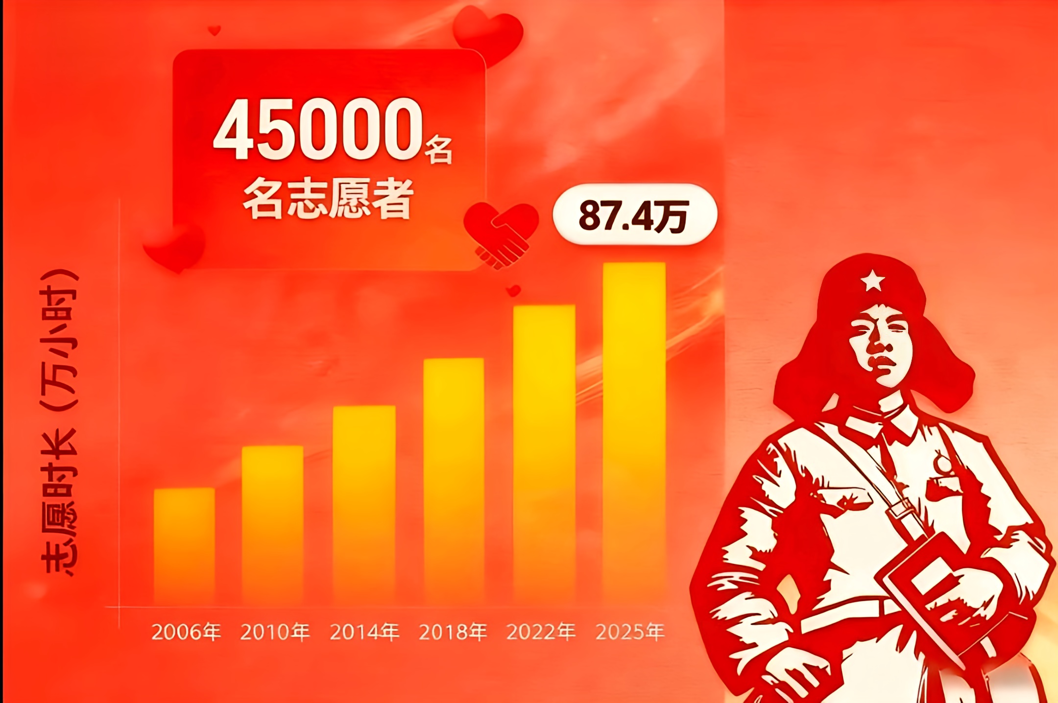 平武的坚守,只是燕理“公益育人”成果的一个缩影。社会公益学院成立一年多来,已汇聚45000余名注册志愿者,年度志愿时长累计超27万小时,服务群众达23万余人次。这些数字背后,是一个个燕理人放弃休息时间、走进社区、走向基层的身影。而成立于2006 年的雷锋连,更以87.4万小时的累计志愿时长,生动诠释了“相聚一团火,播撒满天星” 的铮铮誓言。