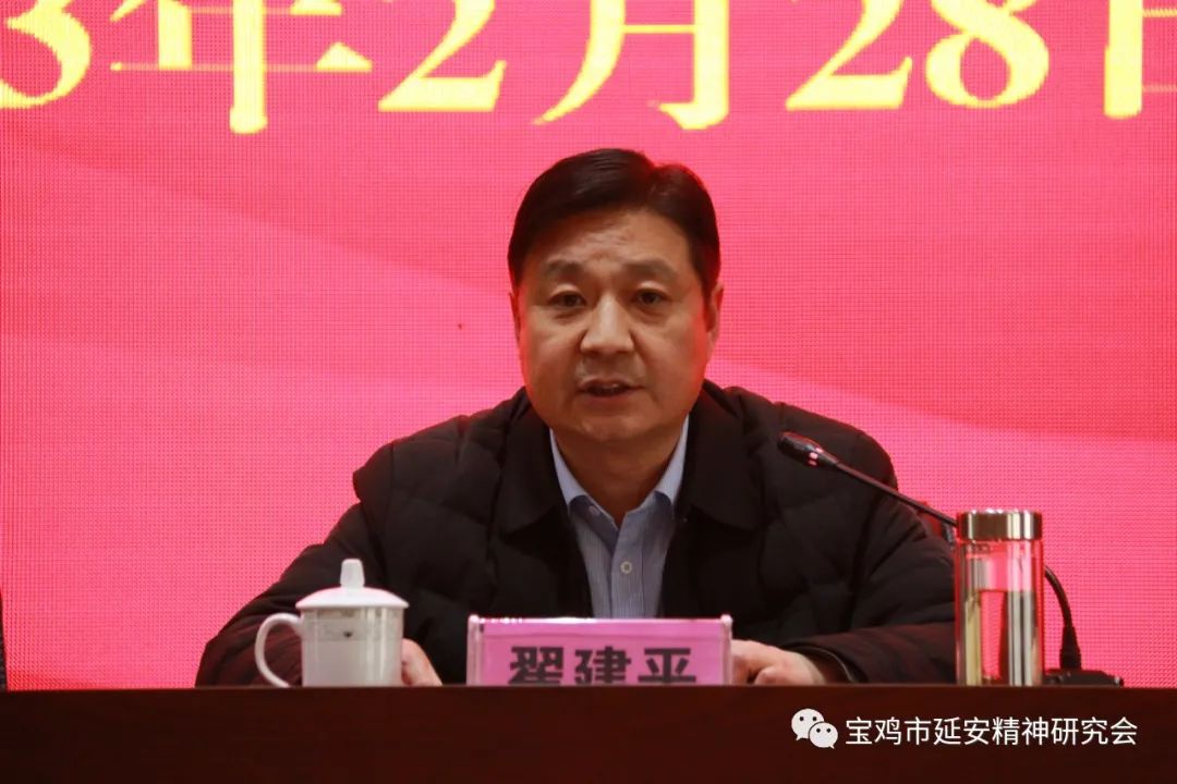 陇县县委副书记翟建平在讲话中强调,研究会要坚持以习近平新时代中国特色社会主义思想为指导,大力研究、宣传、弘扬、践行延安精神,在深化研究上体现“陇县特色”,在宣传宣讲上奏响“陇县声音”,在弘扬践行上彰显“陇县作为”,用以延安精神为主的红色传承,推动陇县现代化建设各项事业高质量发展。要通史明理,为政治建设指方向。使广大干部群众在理想信念、价值理念、道德观念上形成新的共识,让党的声音传得更广泛、更深入。要严实求真,为理论武装夯基础。让延安精神与陇县红色文化相融合,推动延安精神和陇县红色文化研究成果的转化。要以史正人,为红色血脉传星火。着力推动延安精神进学校、进机关、进社区、进企业,不断增强宣传教育的针对性、吸引力和感染力,让延安精神在陇县落地生根、开花结果。要向史而新,为改革发展明路径。把弘扬延安精神与“五区建设”和“12345”发展战略结合起来,围绕“三个年”活动、乡村振兴、县城更新、民生保障、党的建设等重点工作,推出一批有深度、有价值、有影响的研究成果,努力把研究成果转化为奋进中国式现代化新征程、谱写陇县高质量发展新篇章的强大动力。
