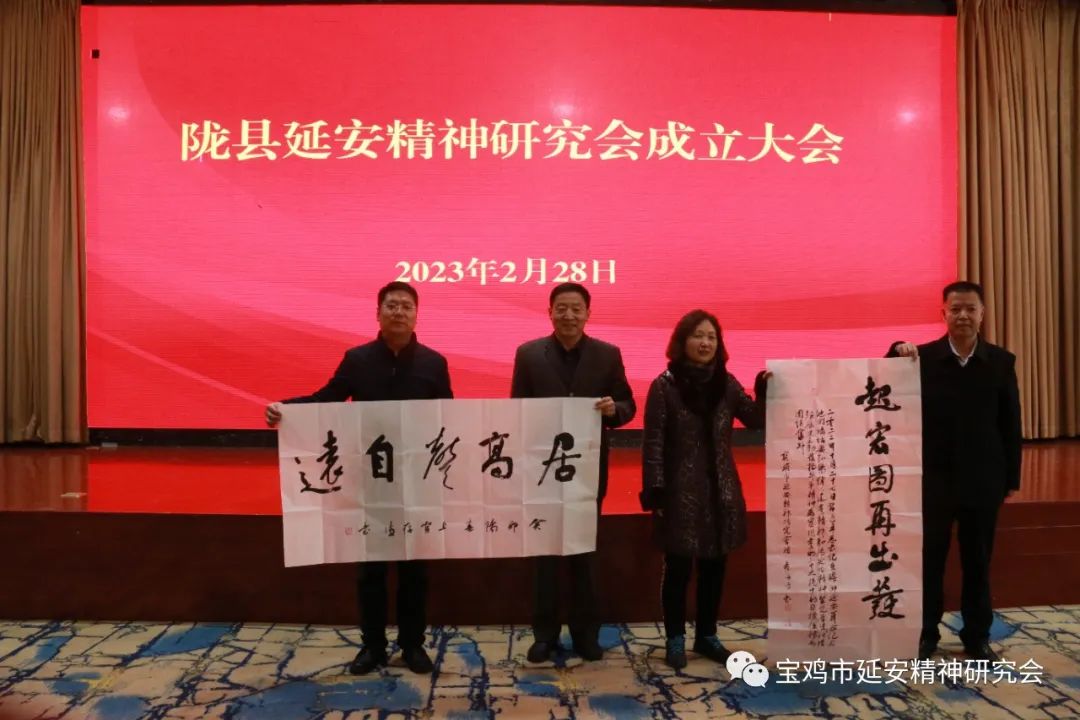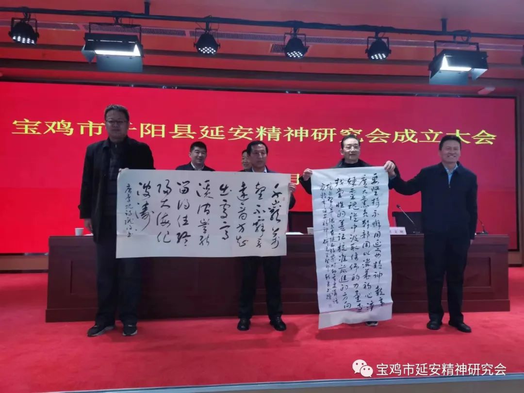 会议期间,宝鸡市延安精神研究会为陇县县委宣传部和陇县延安精神研究会赠送了弘扬延安精神为内容的书法作品。
