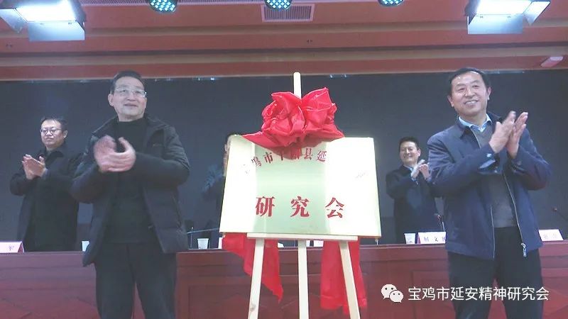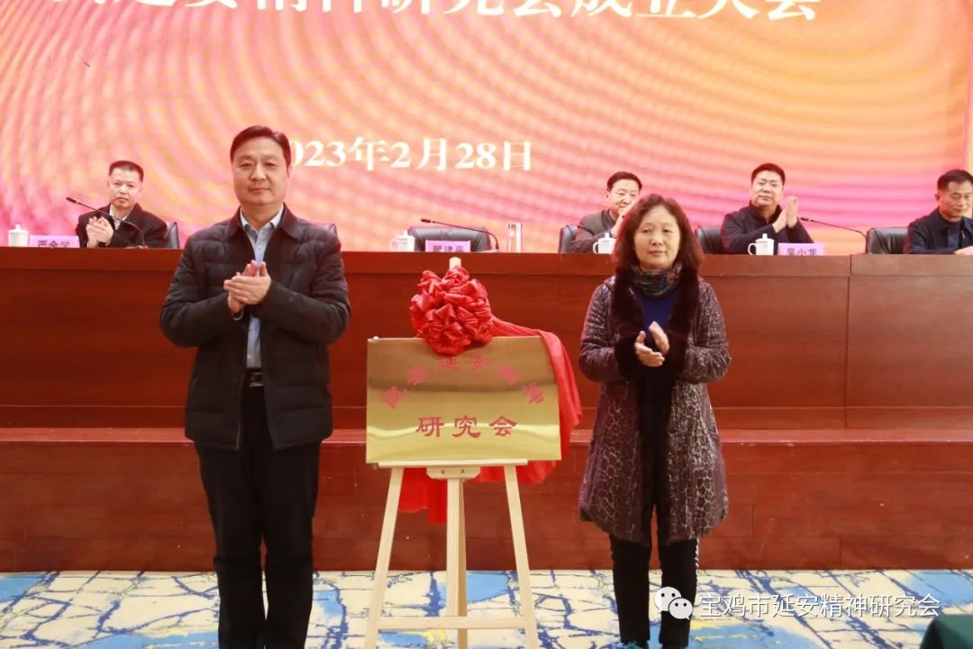 市延安精神研究会副会长谢丽娟和陇县县委副书记翟建平共同为陇县延安精神研究会揭牌