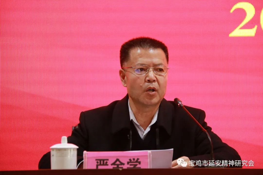 陇县延安精神研究会第一届理事会会长严全学作表态发言,表示陇县延安精神研究会下一步将深化思想认识,提高思想站位;立足学术研究,加强思想引领;服务中心大局,积极担当作为;加强自身建设,树立良好形象,为陇县经济社会高质量发展提供红色文化支撑,传承好红色基因,讲好陇县故事。