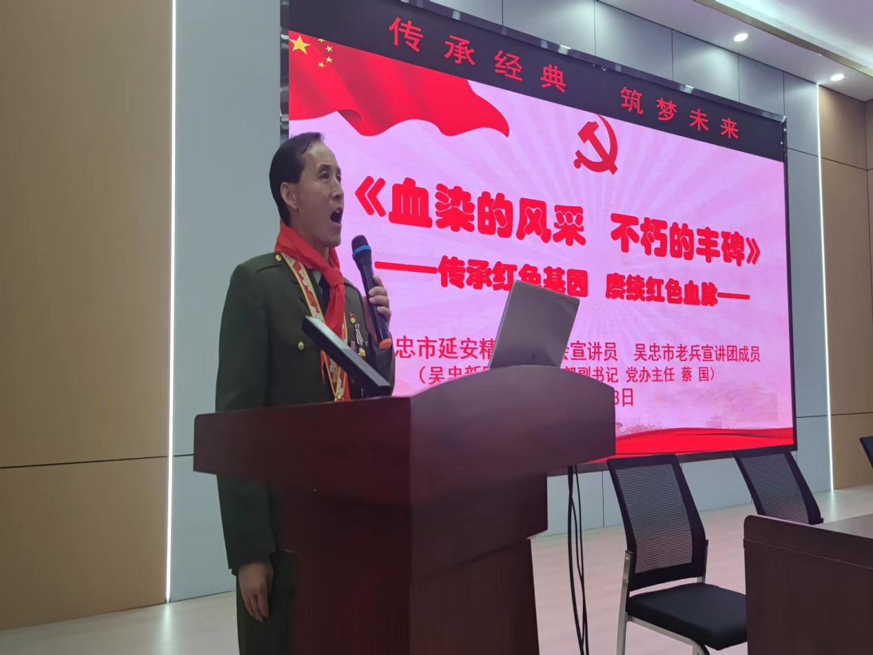 吴忠市直属学校责任督学、吴忠中学原党总支副书记王永康围绕“什么是伟大的民族精神、什么是延安精神、弘扬和传承这些精神的意义作用”等方面进行宣讲。吴忠市教育局退休教师石琦金围绕《英雄永远活在我们心中》主题,深入浅出,列举了中国共产党成立100周年涌现出的英雄代表,从“两弹一星”邓稼先、抗疫功勋钟南山等英雄人物的先进事迹,从“道德品质、学习态度、人生价值”等方面对同学们的学习、修养提出建议和要求。老战士蔡国同志以自己参加1979年对越反击战的亲身经历,讲述一个军人献身国防、赴疆作战、实现梦想、铸就军魂、锤炼心灵、强我中华、当好卫士的感人事迹。