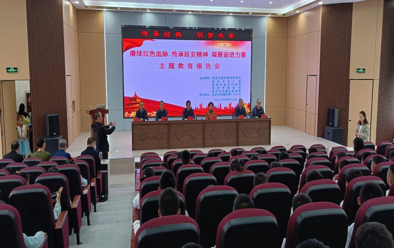 为了深入学习贯彻中国延安精神研究会第六届一次理事会暨六届二次会员代表大会精神和王晨会长的重要讲话,近日,宁夏吴忠市延安精神研究会、吴忠市关工委、吴忠市委老干部局、吴忠市教育局、利通区教育局在利通区第十七小学举办《赓续红色血脉 传承延安精神 凝聚奋进力量》主题教育报告会。吴忠市延安精神研究会会长刘占保主持会议并讲话,吴忠市关工委主任贺彩霞、吴忠市委老干部局副局长丁志坚、吴忠市教育局局长王守军、吴忠市利通区教育局办公室主任李刚及第十七小学校长薛彪及师生代表约300人参加活动。