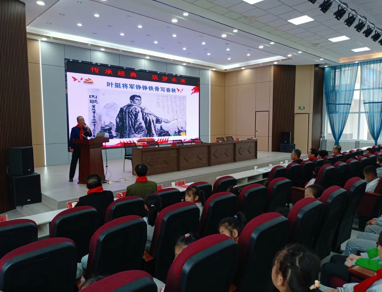 通过宣讲活动,推动红色资源进校园,把延安精神注入了学生心田,加深了师生们对英雄的再认识,激发了师生爱党爱国热情。大家纷纷表示,一定要牢记历史、铭记责任,坚定理想信念,把对党和国家的热爱转化为勤奋学习的动力,学英雄、立壮志,争做新时代好少年,当好红色基因的传承者、实践者。宣讲活动中,少先队员代表为参会领导佩戴了红领巾,宣讲员王永康同志带领师生向党旗进行了庄严的宣誓,接受了精神洗礼。