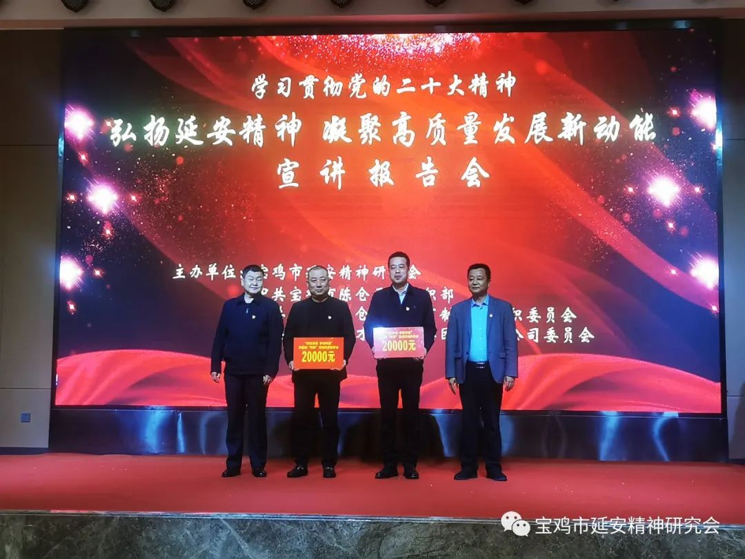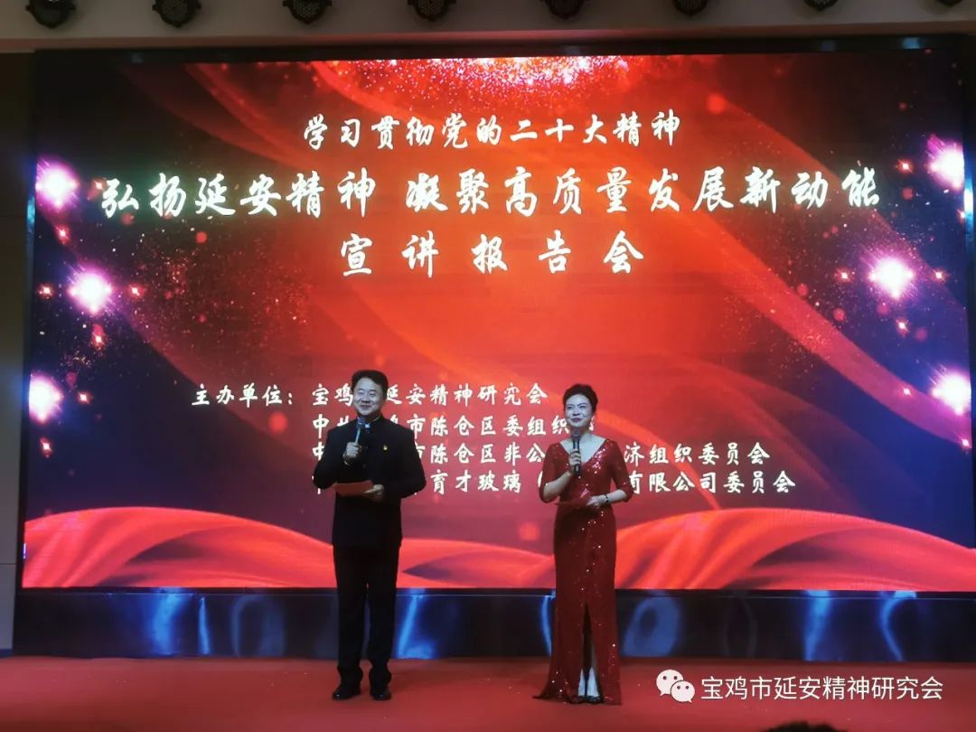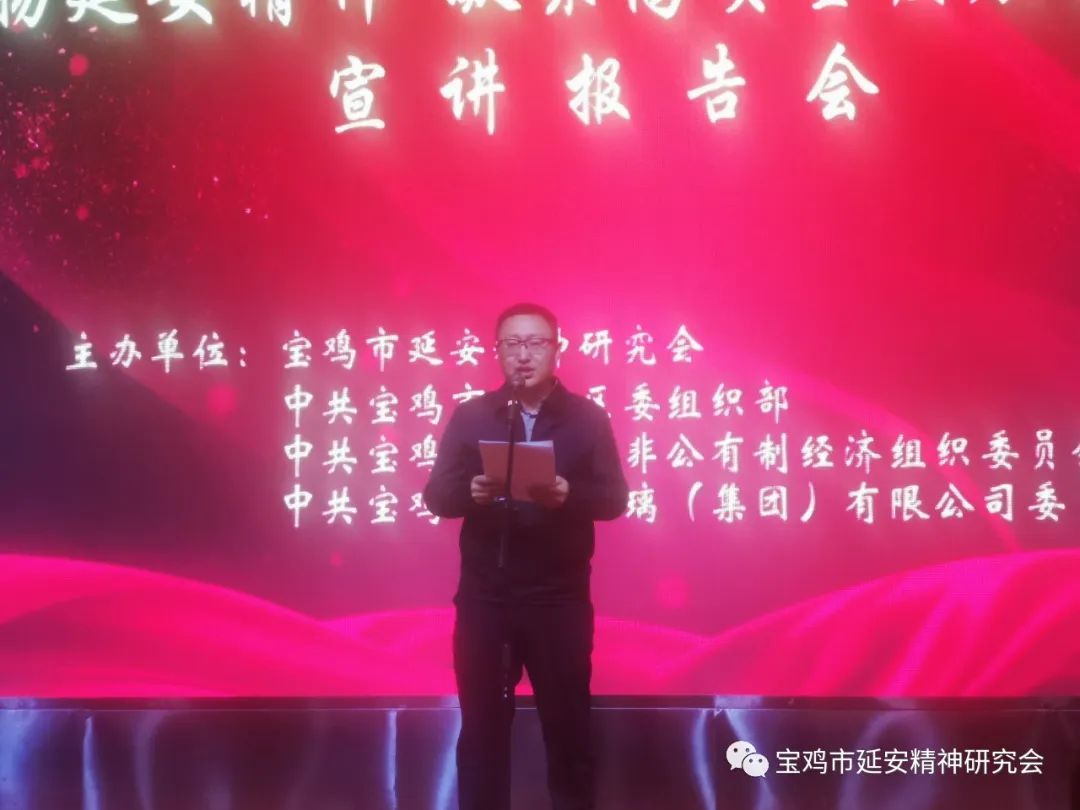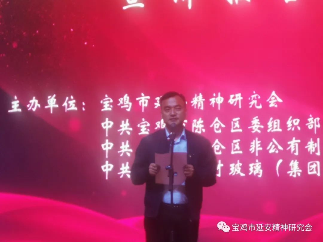近日,陕西省宝鸡市延安精神研究会深入陈仓区非公经济组织开展“弘扬延安精神凝聚高质量发展新动能”主题宣讲活动,推动延安精神“五进”活动向非公经济组织拓展。宝鸡市延安精神研究会副会长谢丽娟、刘一良,陈仓区委常委、副区长闫启东,宝鸡市市场监督管理局党组专职副书记张云昉,宝鸡市陈仓区市场监督管理局党组书记、局长杨亚博,宝鸡市延安精神研究会副秘书长兼办公室主任陆军,宝鸡市非公党委办公室副主任常皓喻,陈仓区委组织部副部长、区两新工委副书记胥勤刚,宝鸡市文化旅游局原副局长、鹏博地产党委书记何长发,宝鸡市民营企业家协会办公室主任吴新成,宝鸡市育才玻璃(集团)有限公司党委副书记、常务副总裁韩小强,宝鸡市育才玻璃(集团)有限公司党委委员、副总裁靳永刚等领导及嘉宾150约人参加了本次活动。