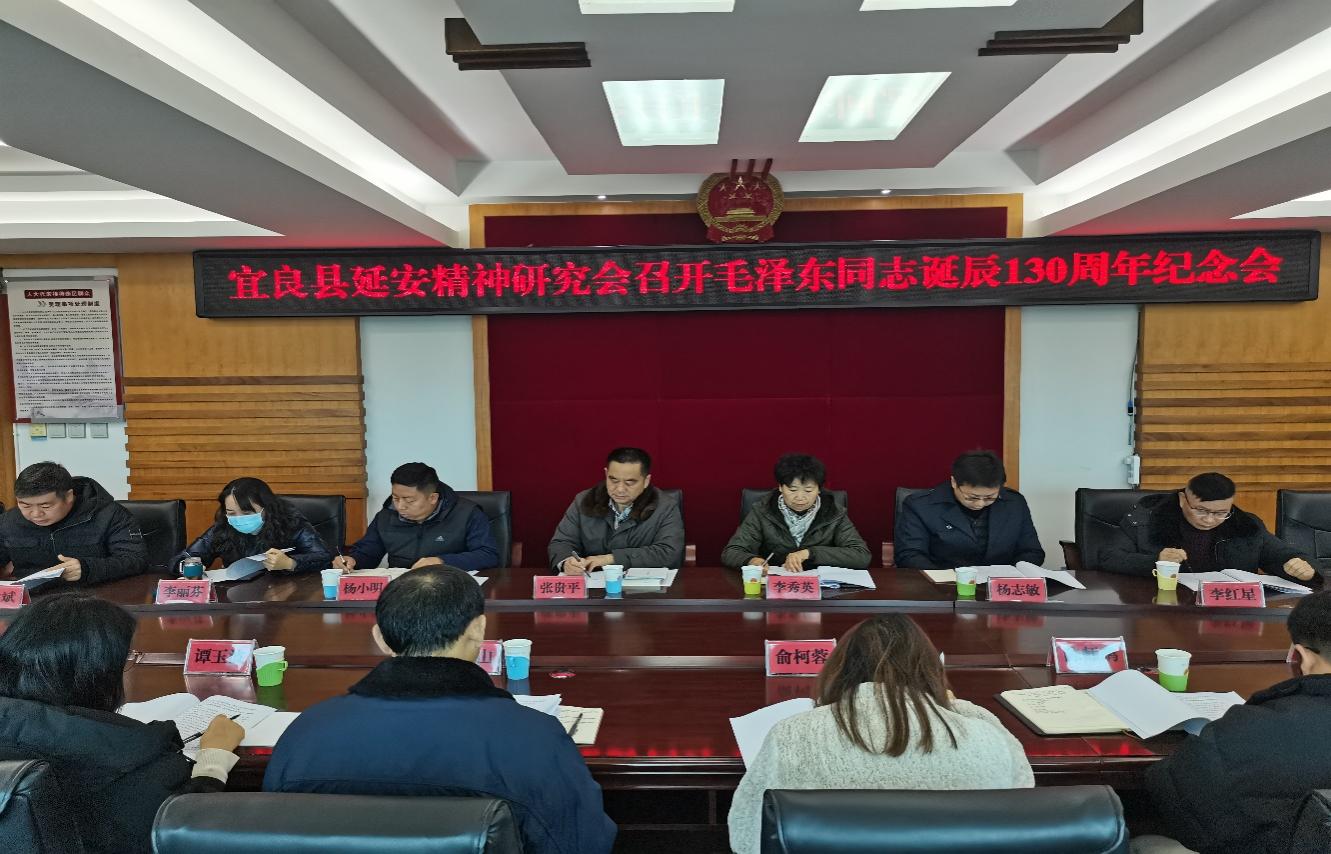 12月25日,云南省昆明市宜良县召开纪念毛泽东同志诞辰130周年座谈会,县延安精神研究会会长张贵平作主旨发言,县委宣传部常务副部长杨小明同志到会指导,县延会常务副会长李秀英在主持座谈会。