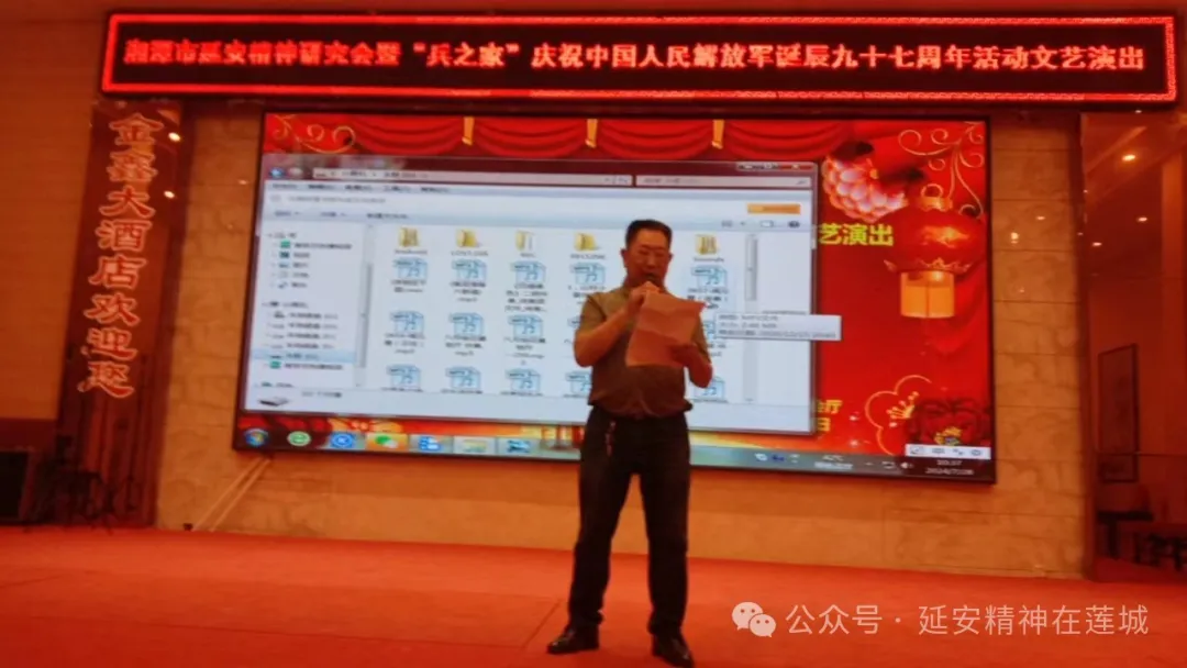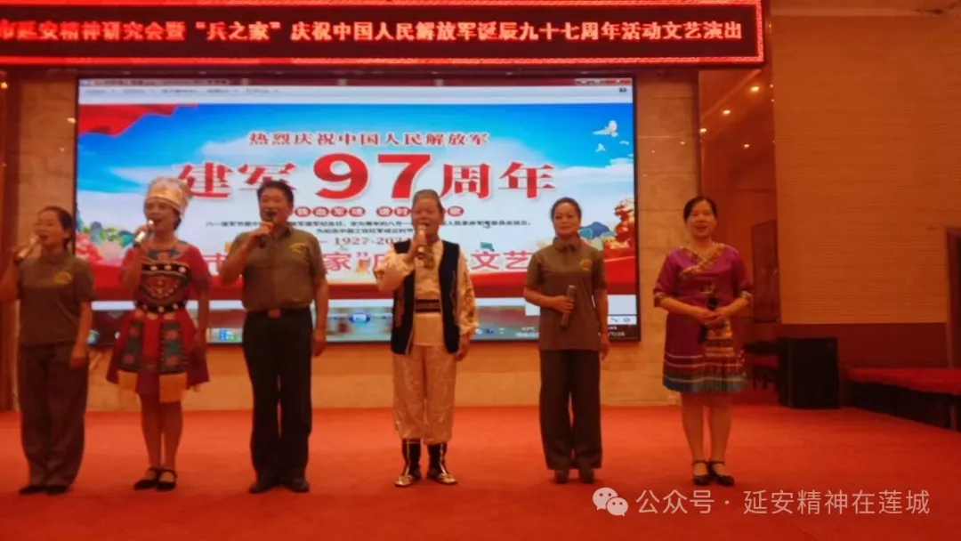 大会发言结束后,在全场高唱《中国人民解放军军歌》的歌声中拉开了本次市延安精神研究会红色艺术团文艺演出的序幕。