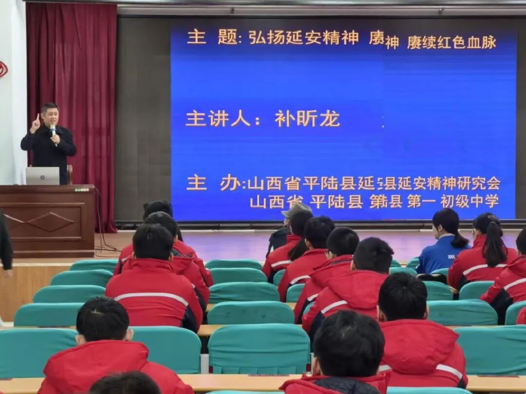 2025年10月22日下午,山西省运城市平陆县第一初中举办"弘扬延安精神,赓续红色血脉"主题宣讲活动。全国十佳演讲家、运城市延安精神研究会宣讲团团长补昕龙教授应邀主讲,300余名师生参加。