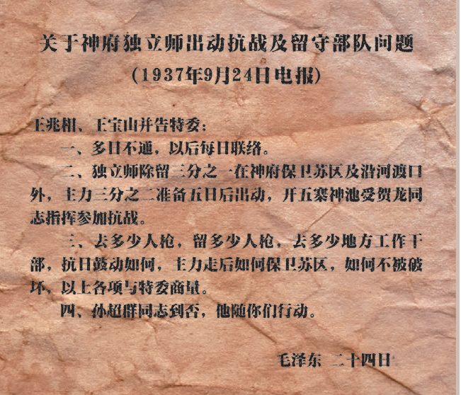 10月4日,神府红军东渡黄河,开赴晋绥抗日前线,改编为八路军。