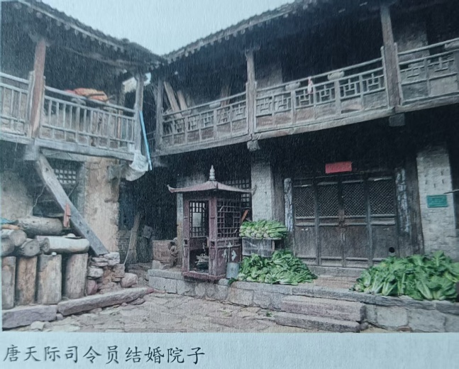 这里还要说的是唐司令带兵再度向河南一带扩展根据地的那段时间,在银洞坪河东卢思龙家的院子里举行了婚礼。那天司令部院里,摆了长长一些桌子,两边都是板凳,唯有中间有两把椅子。过了一会儿,谌志寿秘书招呼大家坐下,后边是司令部的一些人,随后又来了唐司令和耿希贤坐在了椅子上。周围还挤了一圈又一圈的老百姓。这时饭也上来了,是蒸馍,脸盆里盛着有猪肉的菜(俗称“汆汤”),谌秘书说:“今天是唐天际司令和耿希贤同志结为秦晋,我们大家祝贺。”瞬间,在场的指战员和群众爆以热烈的掌声和欢呼声,战士陈颀提出叫耿唱“特别快车”,有提出叫唐唱“桃花江”,有的说唱“三轮车的小姐”,战士林华说唱“迷途的羔羊”。七嘴八舌说了半天,最后,唐司令和耿希贤合唱了一段《游击队之歌》。唱完后,战士陈颀拉着马楠说,来,咱们唱“乖乖特别快”。大家哄笑起来,随即吃了饭,一场生动热烈的婚礼宣告结束。