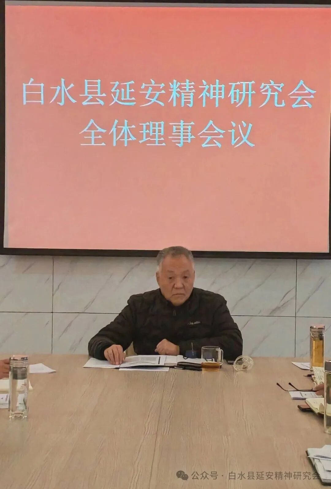 2025年12月12日,白水县延安精神研究会会长刘建成主持召开2025年第五次理事会,组织政治理论学习,传达相关会议精神,讨论审定2025年工作总结,安排部署2026年工作任务。