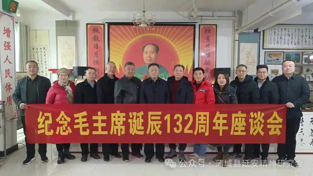 12月23日,陕西省渭南市蒲城县延安精神研究会宣传教育基地董兴邦红色收藏馆召开“纪念毛泽东诞辰132周年”座谈会。座谈会由蒲城县延会宣讲团成员、董兴邦红色收藏馆馆长董兴邦和县延会理事郭琳波发起,县延会理事贾军虎,宣讲团成员张晓蓉、曾秀华、李红英,会员程军涛、王西友、屈振鹏、党胜利、王育藩,副秘书长刘晓斌、张俊成,办公室弥丹、渊浩等参加。