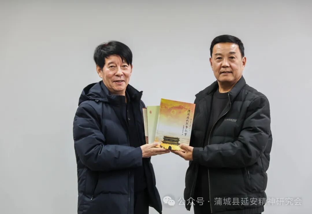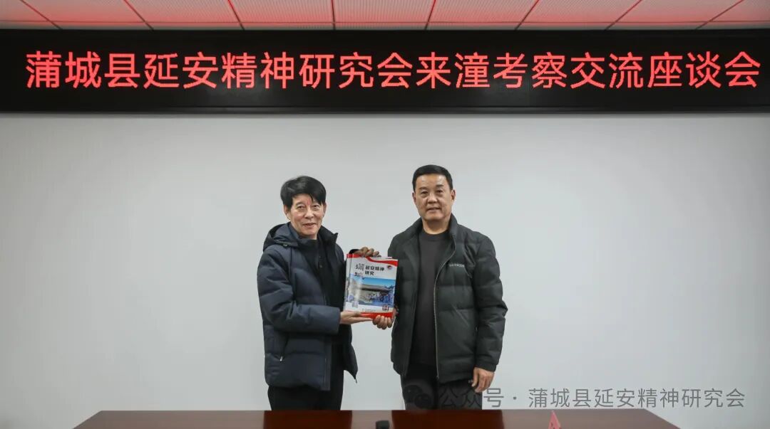 在随后的座谈会上,潼关县延会会长顾金孝从理论研究成果、“五进”工作开展、宣传平台建设、通联工作影响力等四个方面介绍了潼关县延会传承、弘扬、践行延安精神的主要作法。王树勋会长从延会职能定位、内部机构设制、会员发展、党支部建设、期刊编辑以及充分利用新媒体技术等方面进行了经验交流和体会分享。会上,两县延会互增了《蒲城延安精神研究》和《潼关延安精神研究》;潼关延会还赠送了《潼关历代战争纪事》《咏潼关古诗词选注》等书籍。
