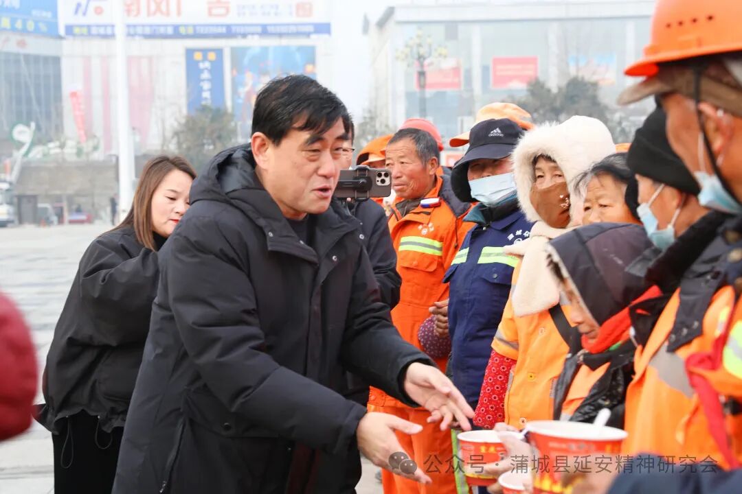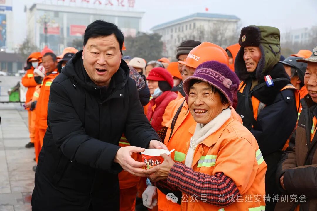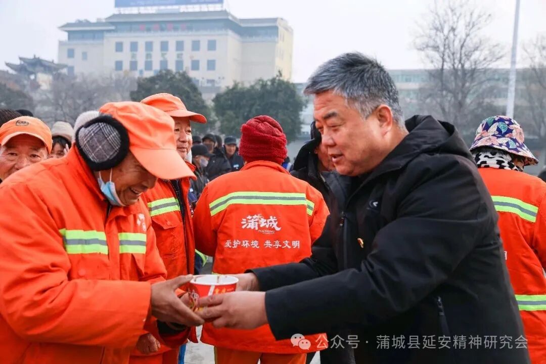 元月26日,农历十二月初八,在这承载着深厚文化底蕴的传统节日来临之际,为了让辛勤耕耘在一线的环卫工人感受到来自社会的尊重与关怀,蒲城县慈善协会、县延安精神研究会携手,组织爱心企业金针堂健康管理公司、聪明树早教中心、百姓口腔医院等十余家爱心企业及“邻里驿站”爱心人士、志愿者在延安路文化中心广场开展"腊八节为环卫工人送福粥"活动,向在岗环卫工人致以诚挚的节日问候和祝福。环卫工人、县市容中心管理人员、各界群众等300余人参加。