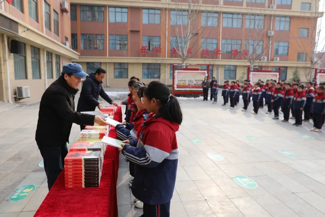 下午,洛滨小学的校园小广场上,300余名小学生身着整齐校服,脸上充满喜悦与期待之情。当县延安精神研究会的成员们将275本色彩鲜艳、内容鲜活、图文并茂的红色图书递到孩子们手中时,热烈的欢呼声此起彼伏,冬日的校园瞬间被童真与热忱点亮。