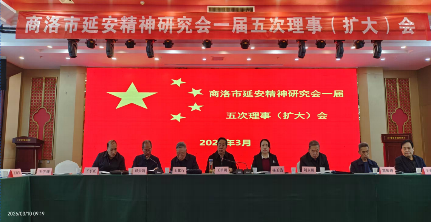 开启新征程,弘延创辉煌。3月10日,陕西省商洛市延安精神研究会一届五次理事扩大会在商州富丽华酒店隆重举行。会议紧密围绕深入贯彻党的二十届四中全会精神、习近平关于弘扬践行延安精神的重要论述和省延会相关会议精神及市委五届九次全委会议精神,总结2025年工作,安排部署2026年工作,交流特色工作经验,表彰理论研究优秀论文作者,开展了专题理论培训活动。市县(区)延安精神研究会会长、副会长、秘书长、市延会常务理事、理事、理事单位、市委宣传部、老干局、党研室、市残联、关工委、市慈善协会负责人共60余人参加会议。市延安精神研究会会长王甲训作工作报告。