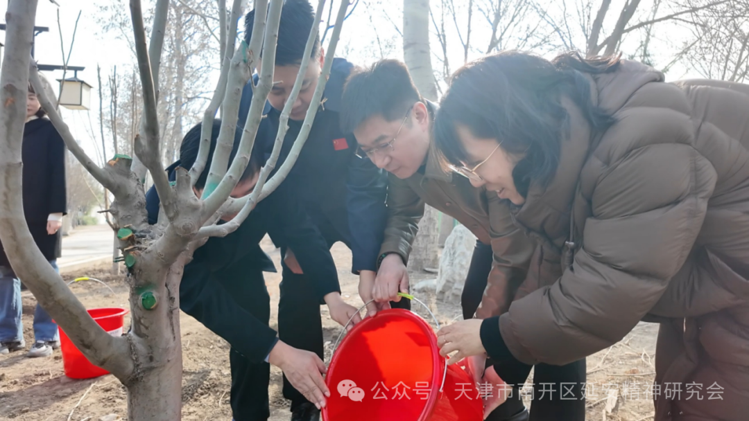 3月19日上午,在3·20天津市全民义务植树日前夕,南开区延安精神研究会组织会员及水上公园街社区志愿者,走进周恩来邓颖超纪念馆南开育棠园,开展海棠树苗培育养护志愿服务。天津市关心下一代工作委员会老模范工作委员会副主任葛英秋,委员李蕾、刘凤媛应邀出席;区延安精神研究会会长朱树江,副会长赵月萍、李亚博、曹瑞杰,监事长尹雪莉,理事王月华、吴伟参加活动。