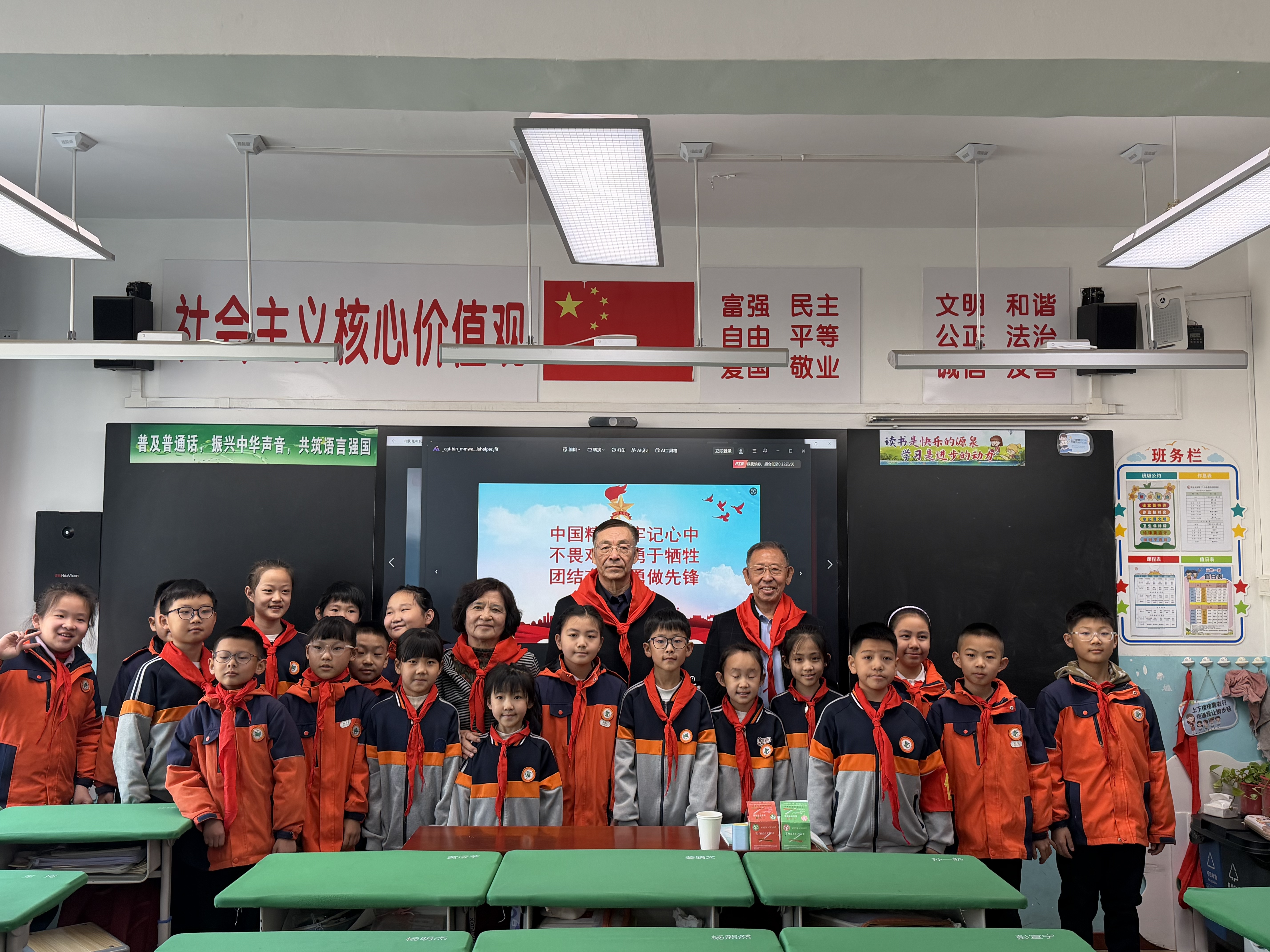 最后,贺孝副会长寄语全体学生,大家是祖国的未来、民族的希望,更是红色精神的传承者与接班人。希望同学们传承长征精神,做信念坚定、不畏艰难的追梦人;弘扬延安精神,做自立自强、勤俭节约的好少年;践行雷锋精神,做乐于助人、品德高尚的人。牢记红色基因代代传,童心向党勇向前,主动担当民族复兴大任,把三大红色精神刻在心里、落在行动上,听党话、跟党走,努力成长为能够担当民族复兴大任的时代新人,让红色精神永放光芒。