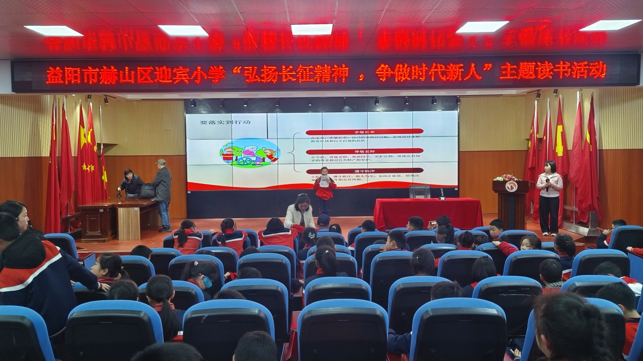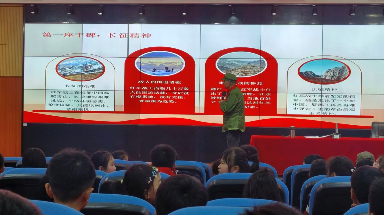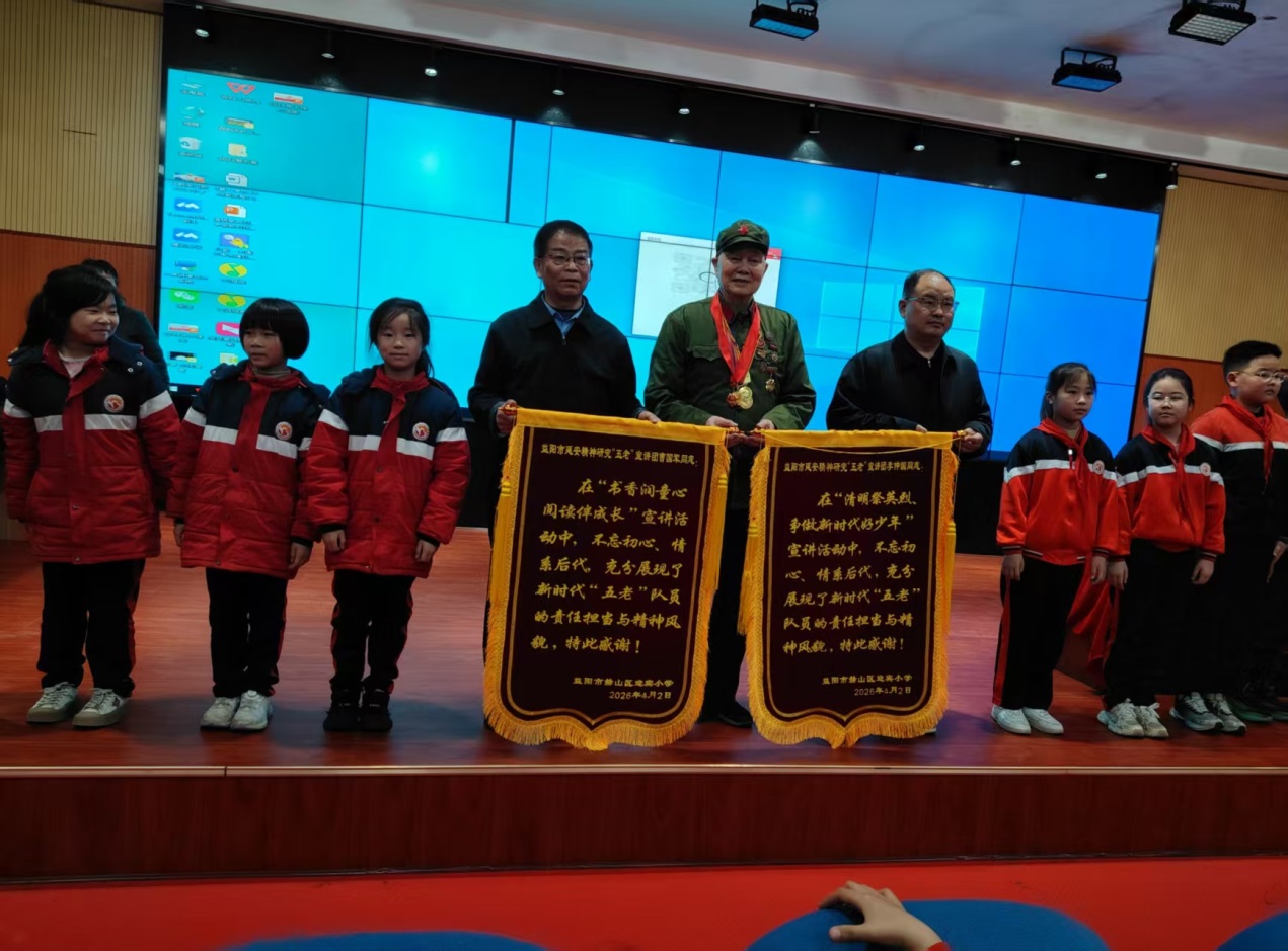 4月2日,益阳市赫山区迎宾小学举办了两场“弘扬长征精神,争做时代新人”主题读书活动。学校特邀92岁高龄抗美援朝老战士李仲国、益阳市关工委宣讲团宣讲员曹国军进校园开展专题宣讲,全体行政、语文教师及300名学生共同参与此次活动。纪念红军长征胜利90周年,厚植青少年爱国情怀,扎实推进书香校园建设,引导学生铭记革命历史、勇担时代使命。
