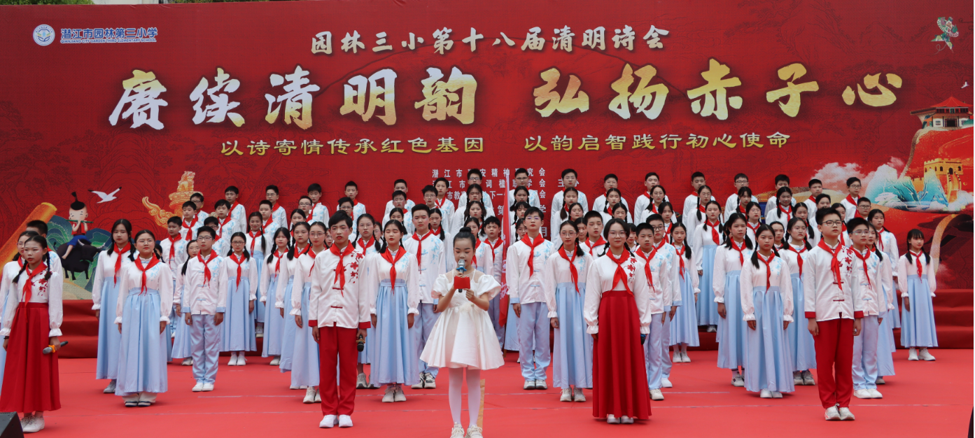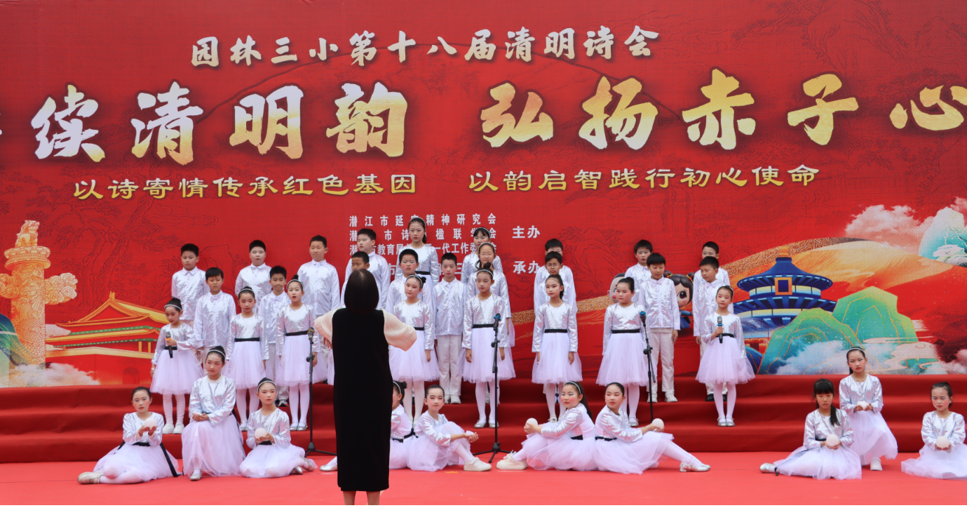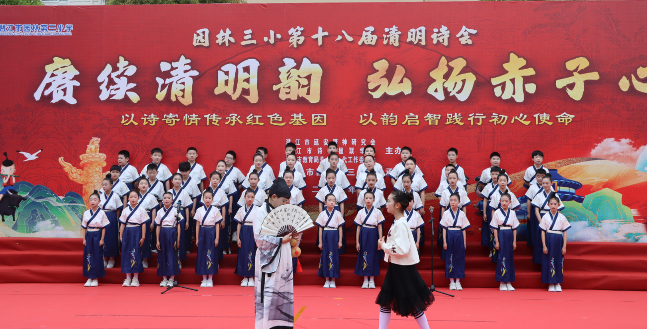 清明寄哀思,诗词润心田。园林三小第十八届清明诗会不仅是一次成功的艺术展演,更是一堂深刻的思政教育与文化传承课。它通过诗、歌、舞、乐等多种形式,将清明传统文化、红色革命精神,延安精神与经典诗词魅力有机融合,引导学生在缅怀先烈中铭记历史,在诵读经典中积淀素养,在艺术熏陶中陶冶情操。活动充分展示了学校“五育并举”、全面育人的丰硕成果,展现了师生积极向上的精神风貌。愿诗意常伴成长,愿初心照亮前程,园林三小的学子们必将承载着这份文化的滋养与精神的激励,勤奋学习,茁壮成长,努力成为担当民族复兴大任的时代新人!