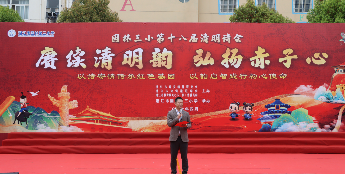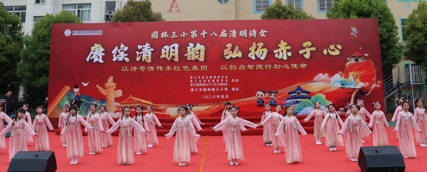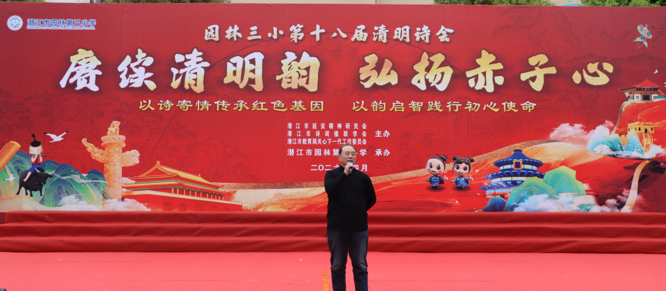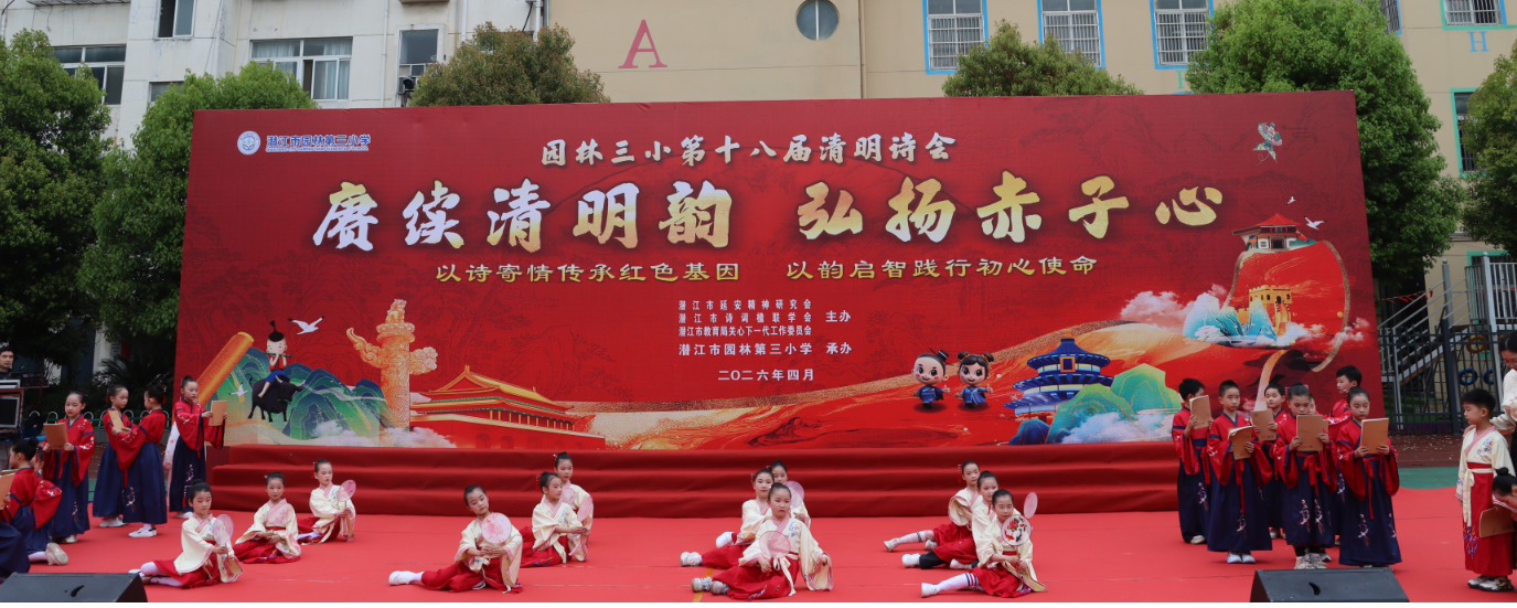 春风拂柳寄哀思,诗韵悠扬润童心。2026年4月3日上午,由潜江市延安精神研究会、潜江市诗词楹联协会、潜江市教育局关心下一代工作委员会主办,潜江市园林第三小学承办的“赓续清明韵,弘扬赤子心”清明诗会在园林三小校园操场隆重举行。共同在清明的传统节里,以诗缅怀,以歌言志,开启了一场穿越古今、传承延安精神与经典文化的诗意旅程。