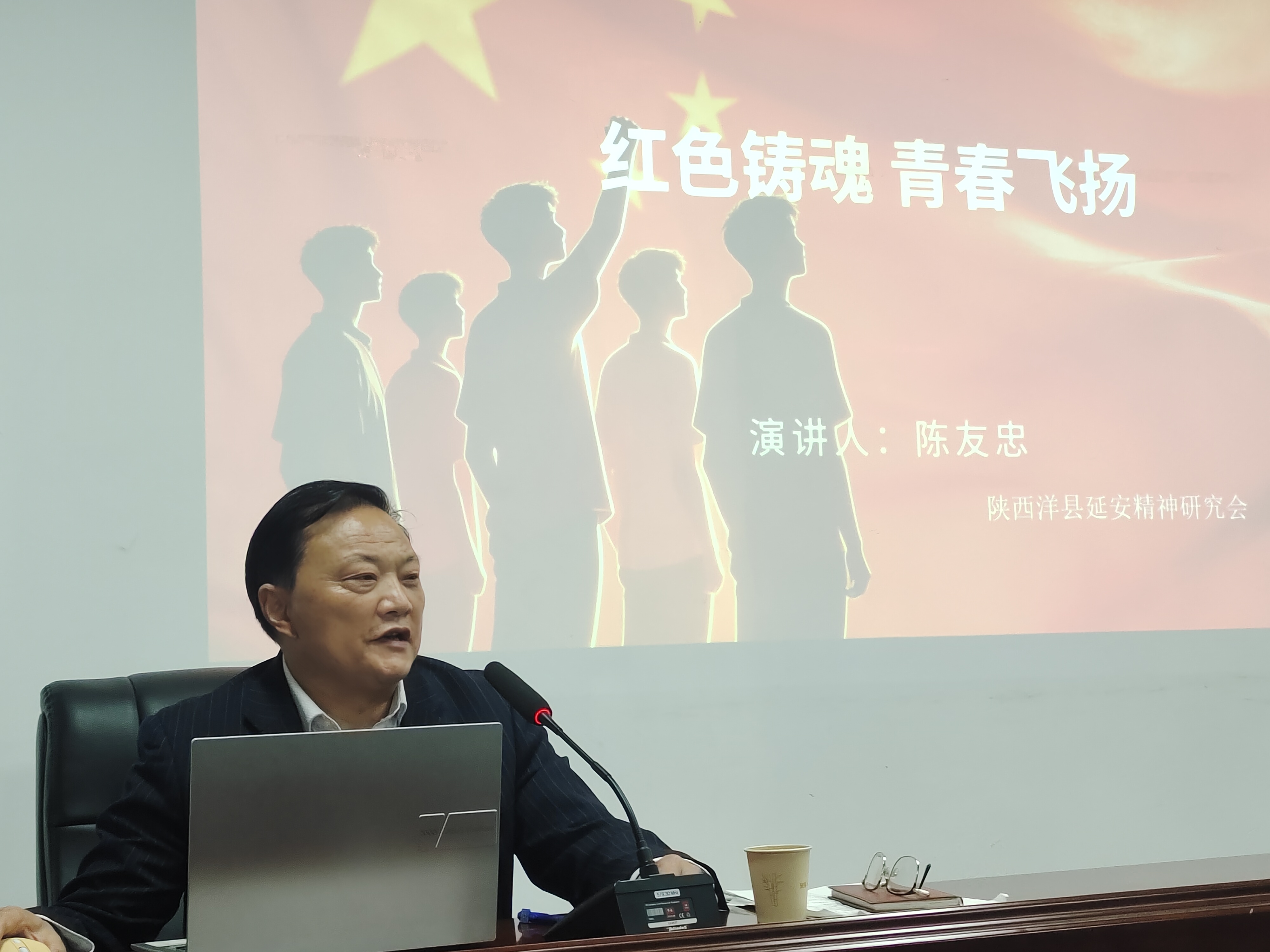 最后,陈友忠会长紧扣时代发展要求,生动诠释了新时代青年传承延安精神的责任与担当,引发学子们的强烈共鸣,赢得热烈掌声。