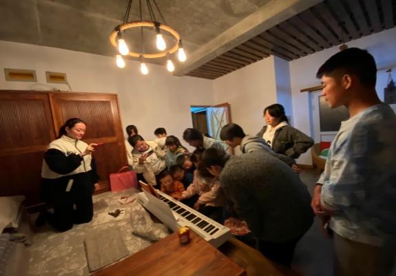 应河北阜平县城南庄镇花山村党支部邀请,中国延安精神研究会会员毛旭和陈韵龄老师等人来到了阜平县城南庄镇的花山村,带去了钢琴、书本、文具,为花山村十多名5—10周岁的少年儿童开展书法艺术和钢琴基础知识辅导。
