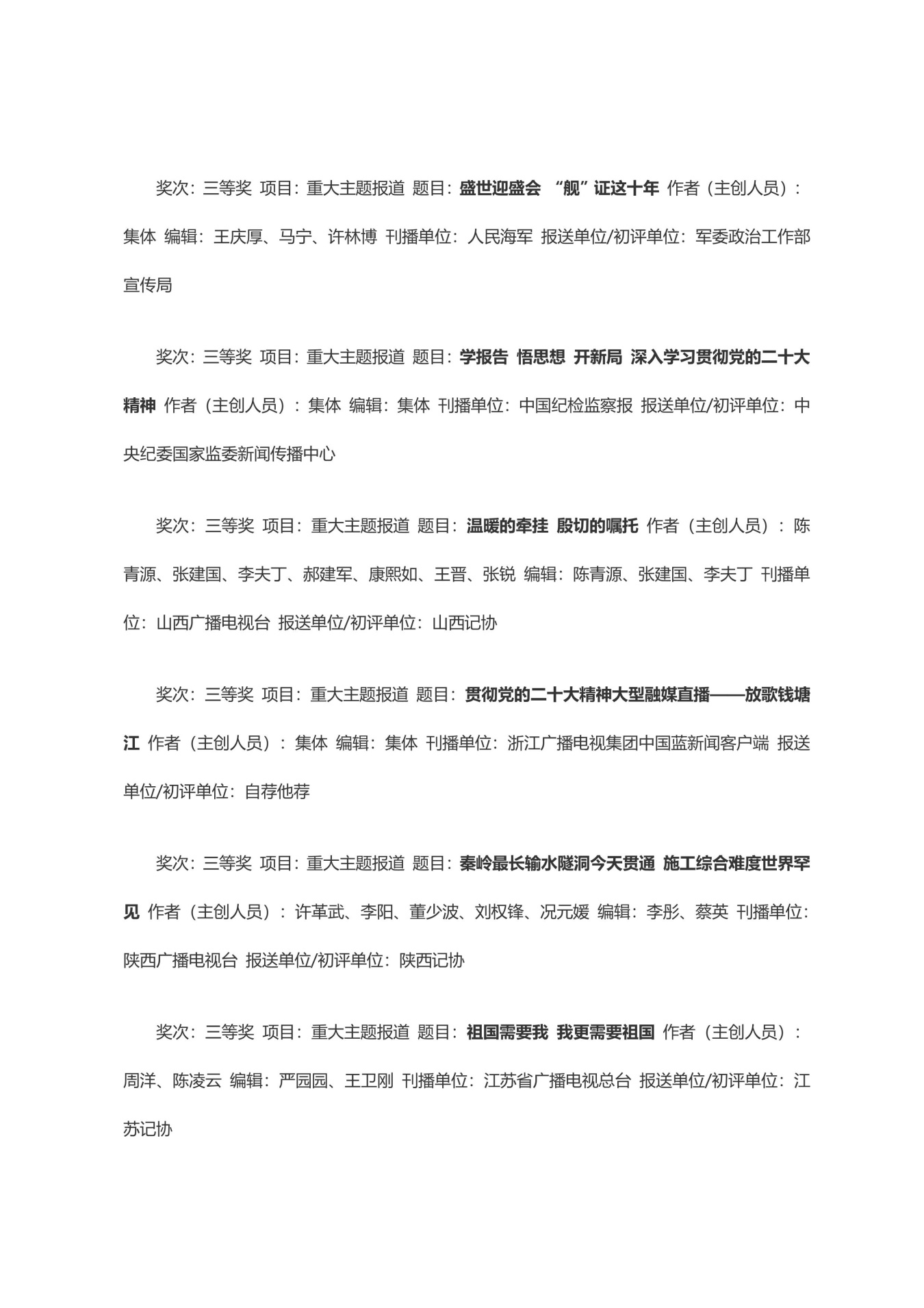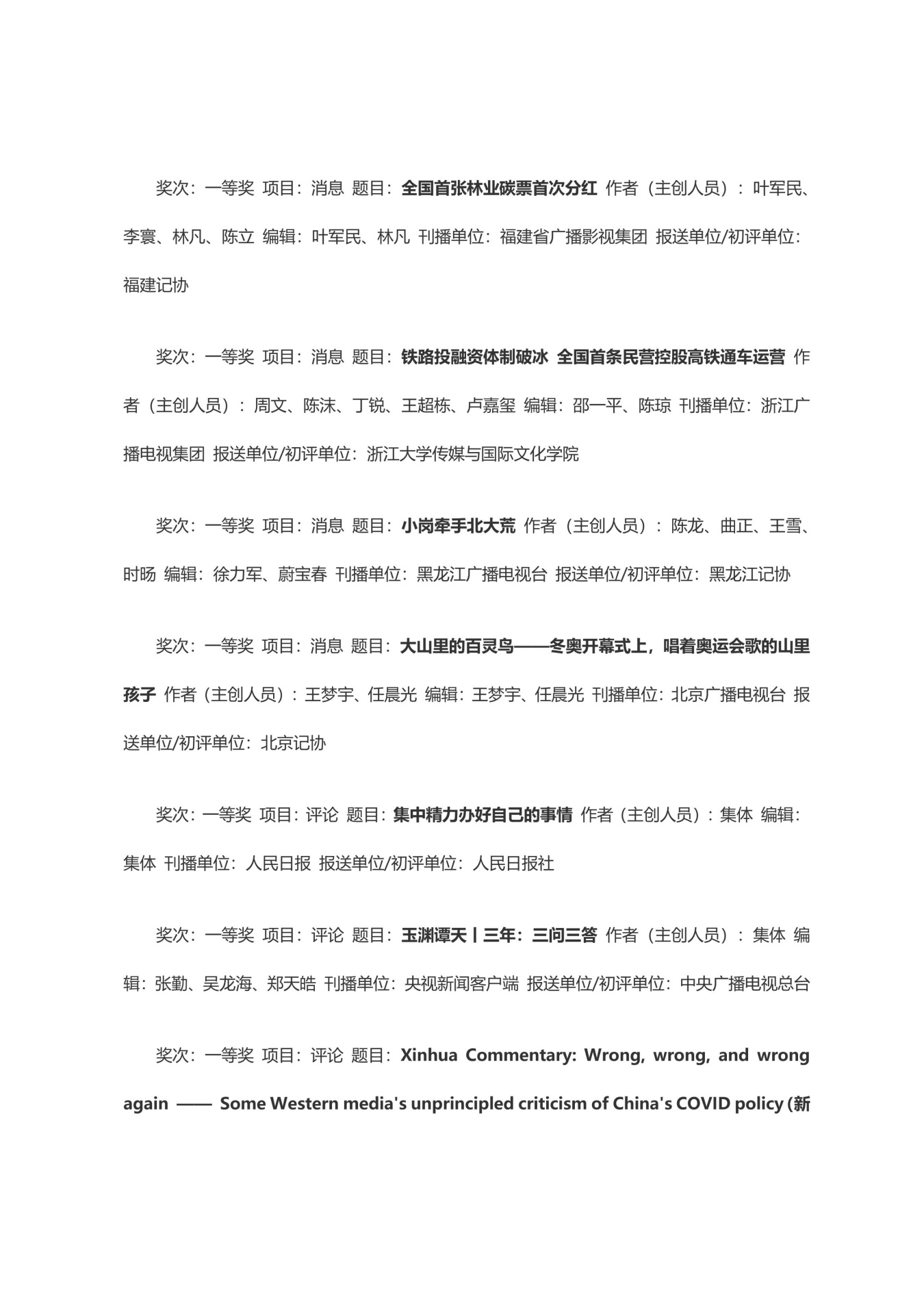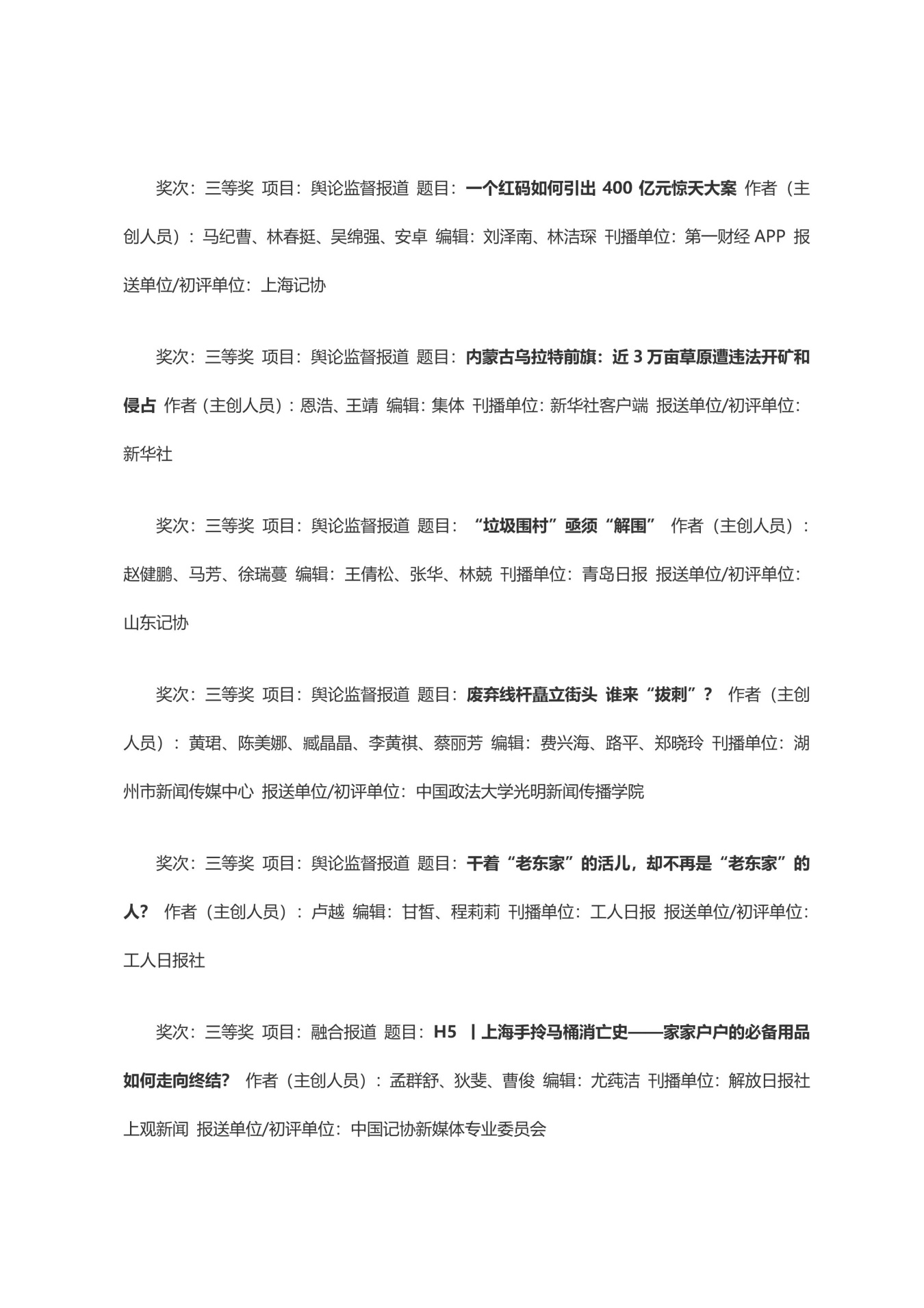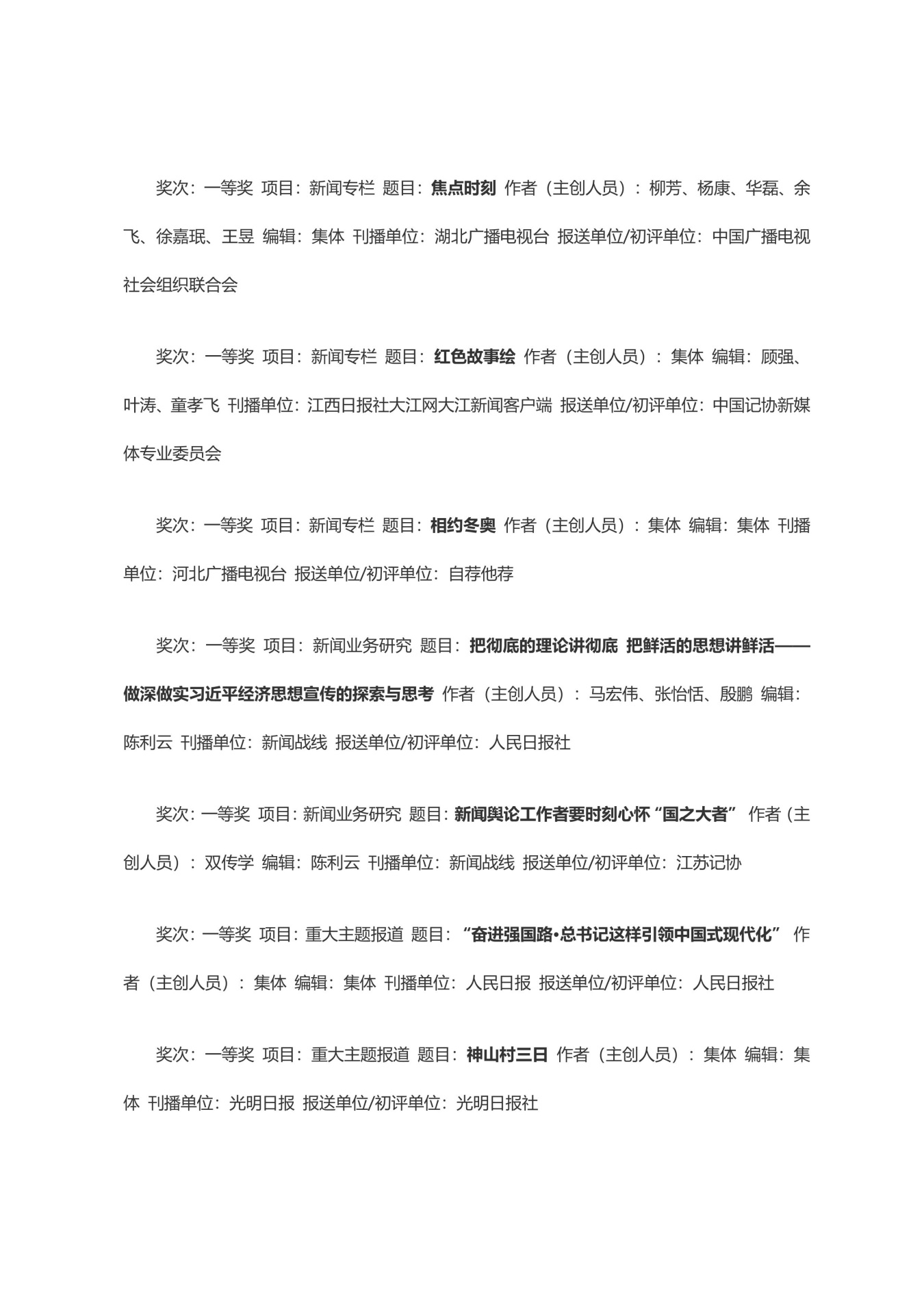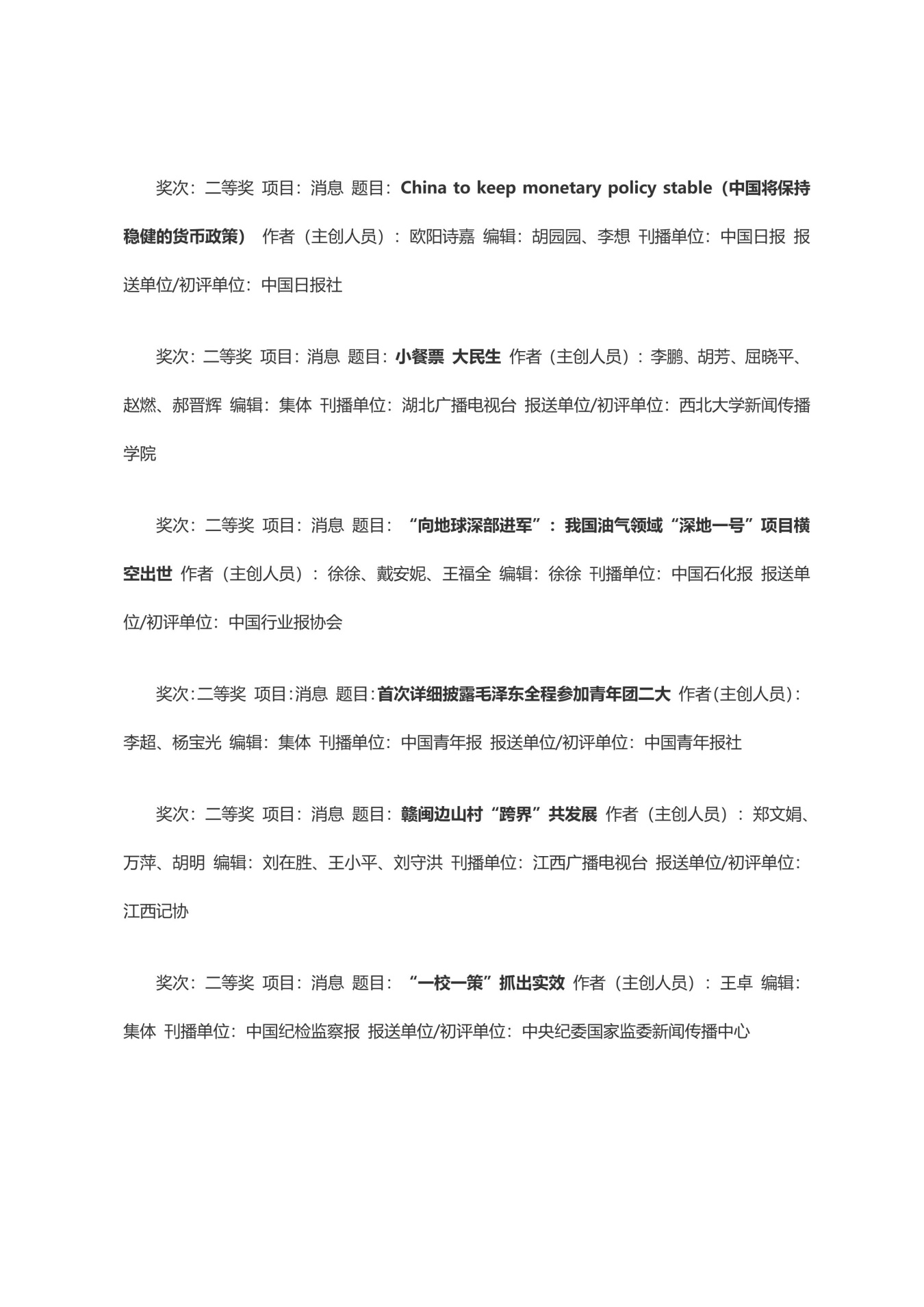 第三十三届中国新闻奖获奖作品目录