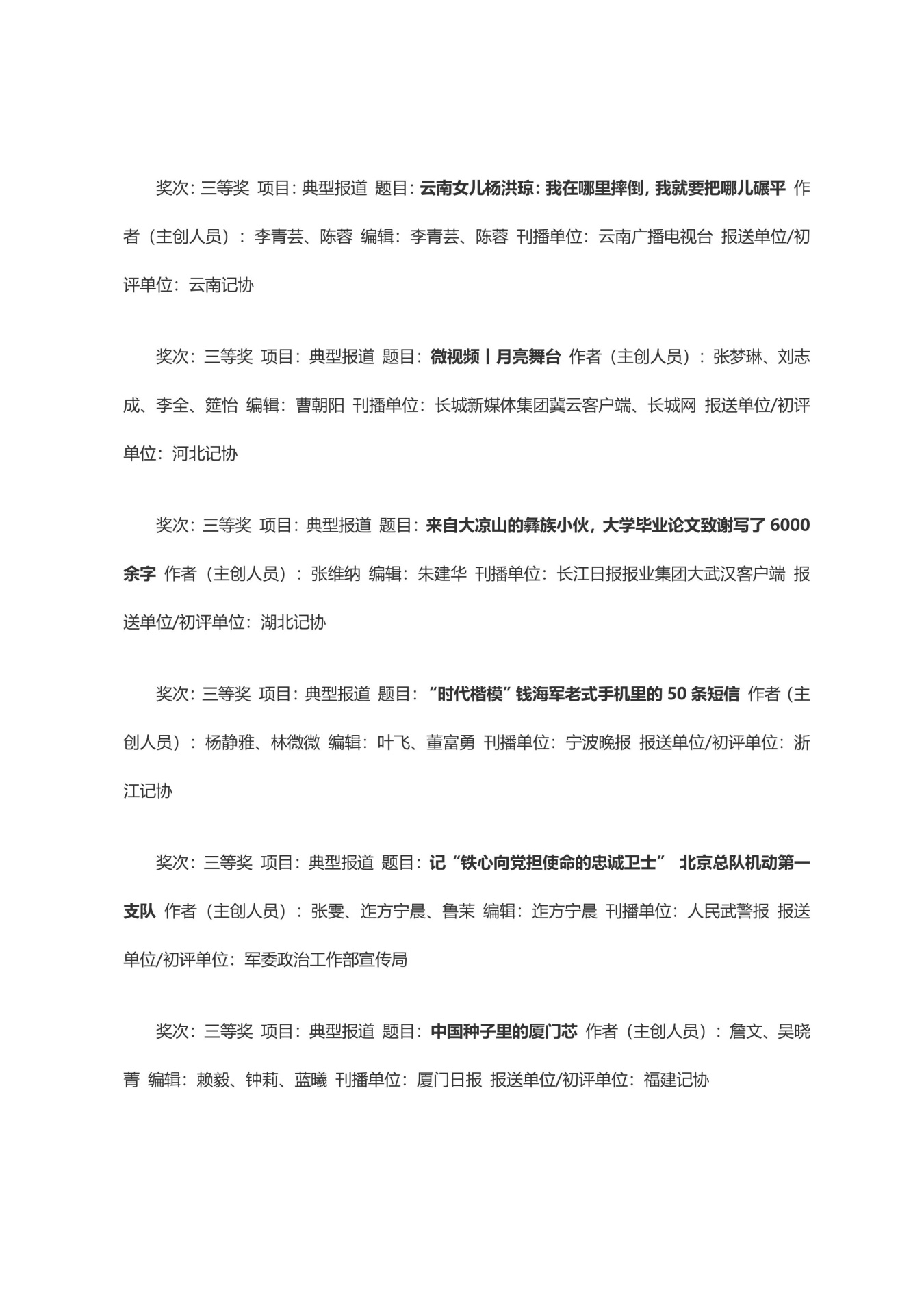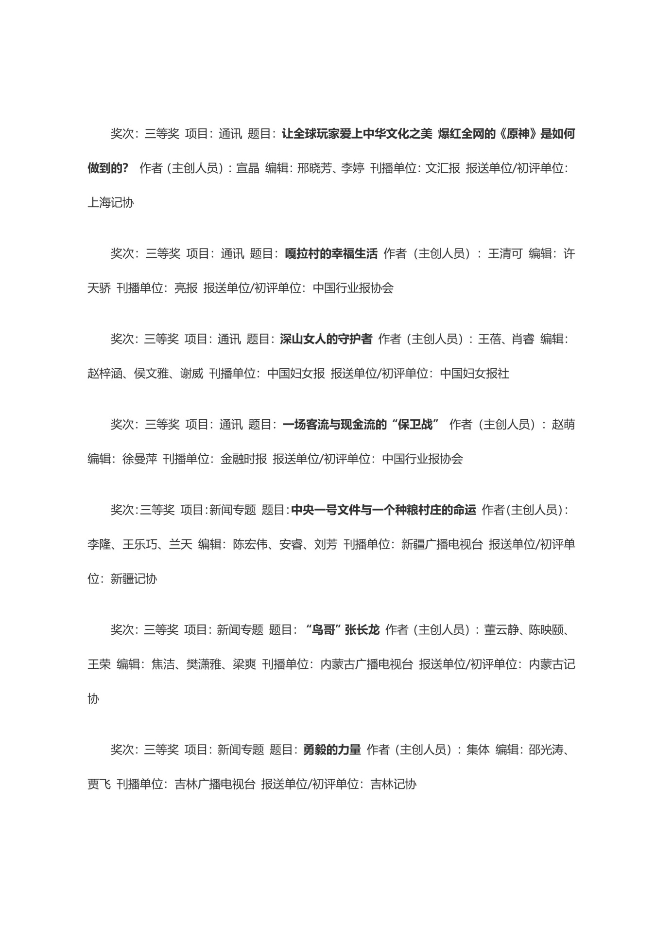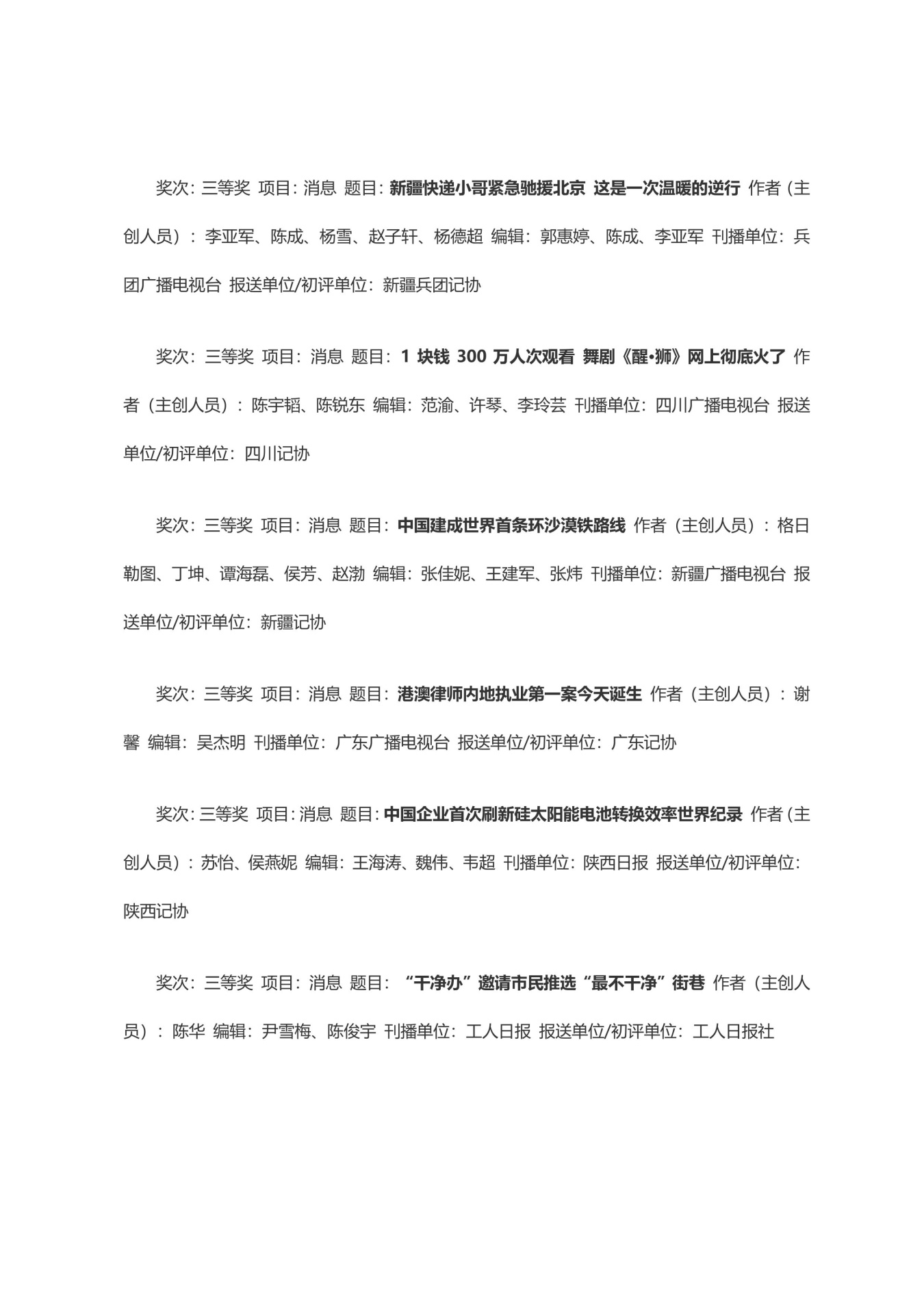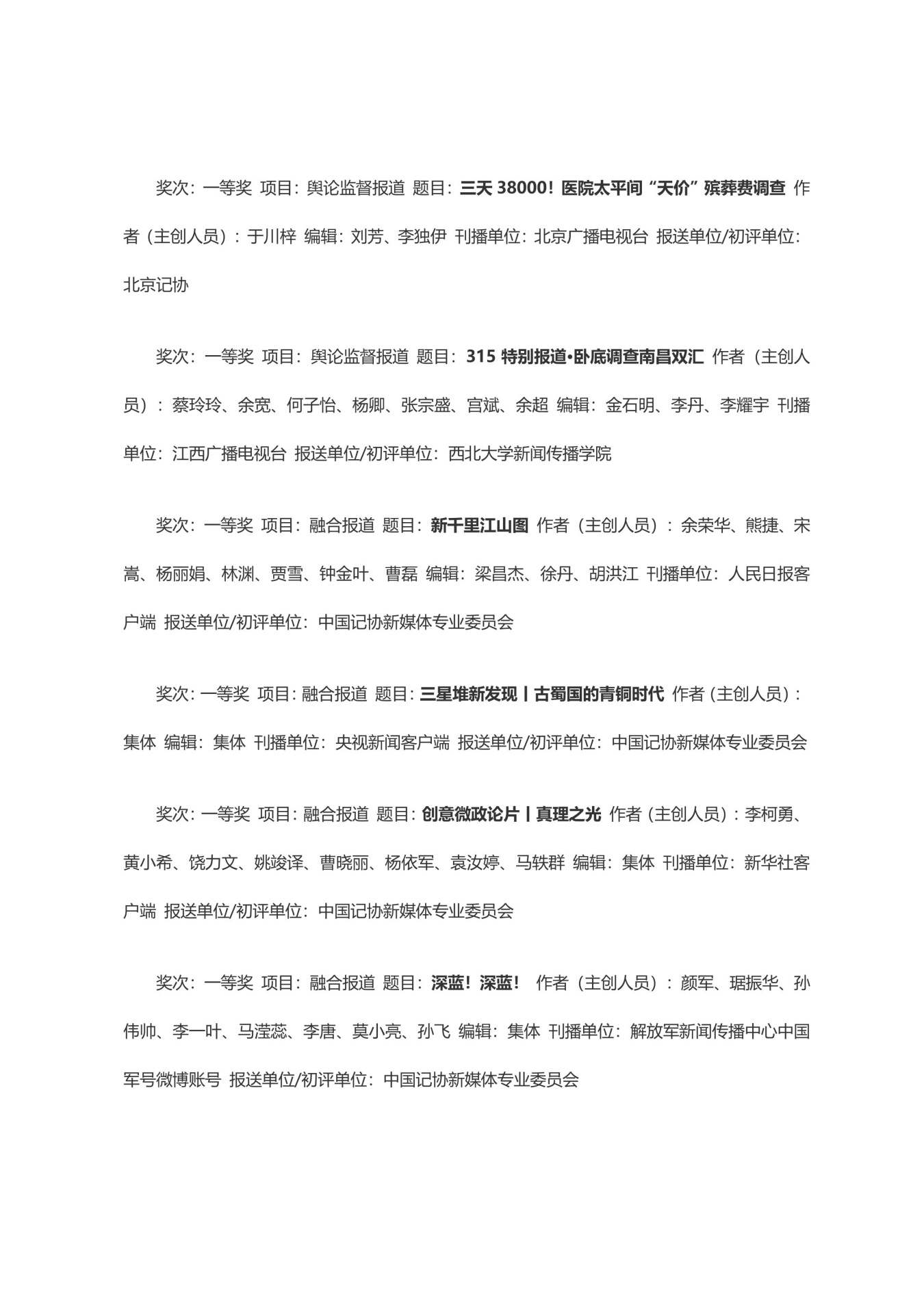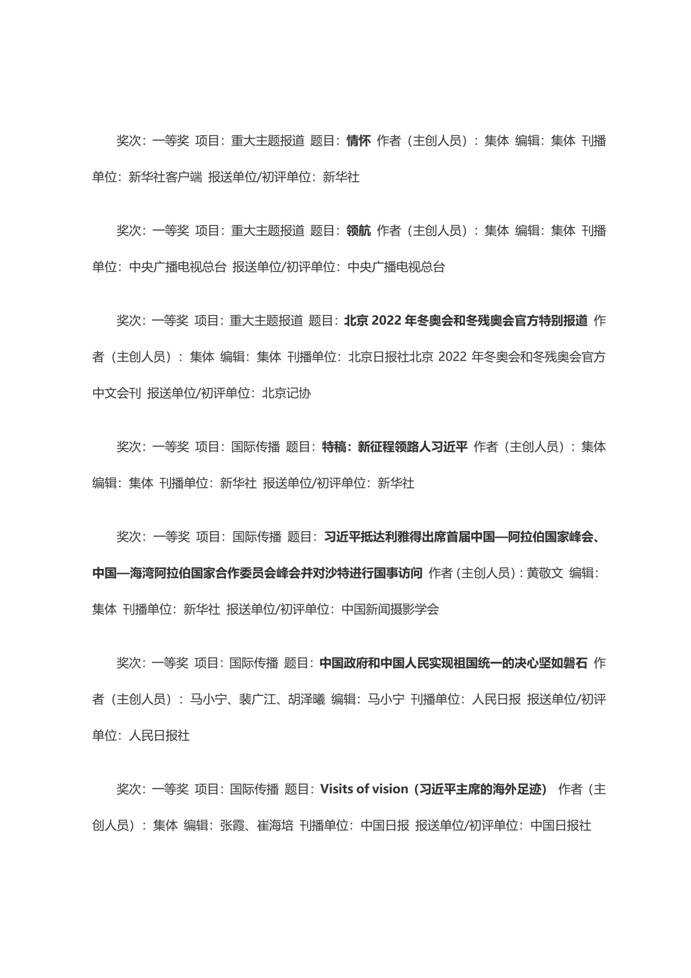 第三十三届中国新闻奖获奖作品目录
