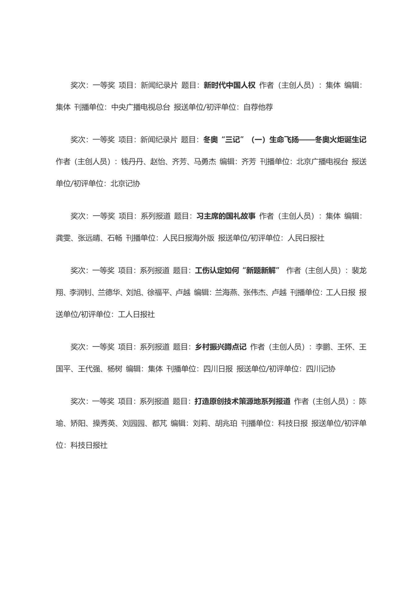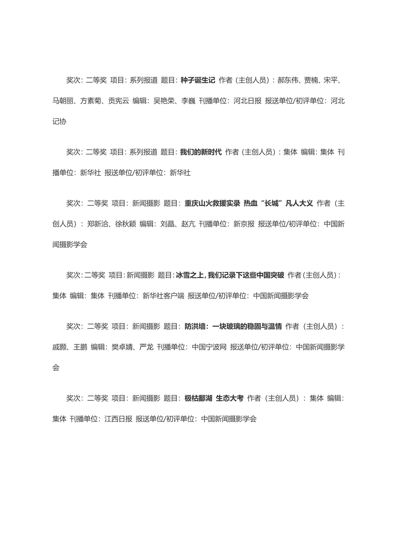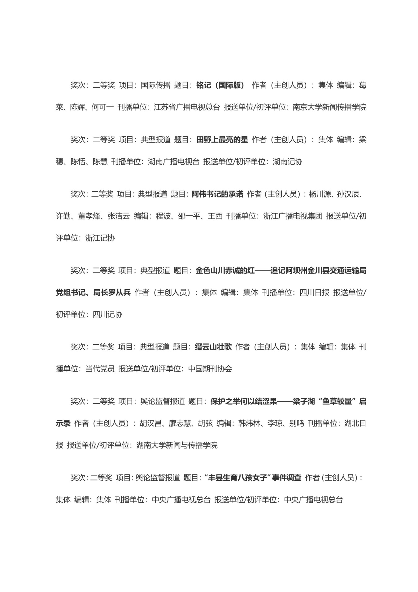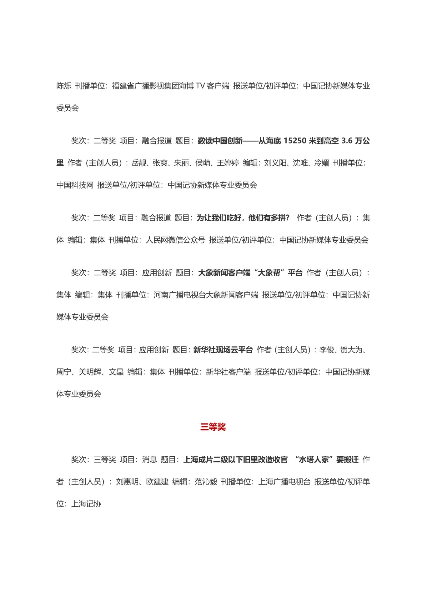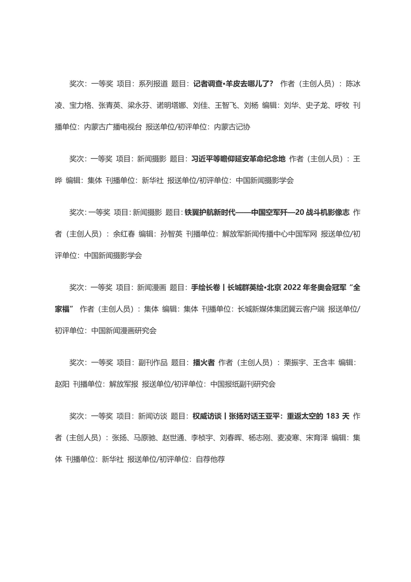 第三十三届中国新闻奖获奖作品目录