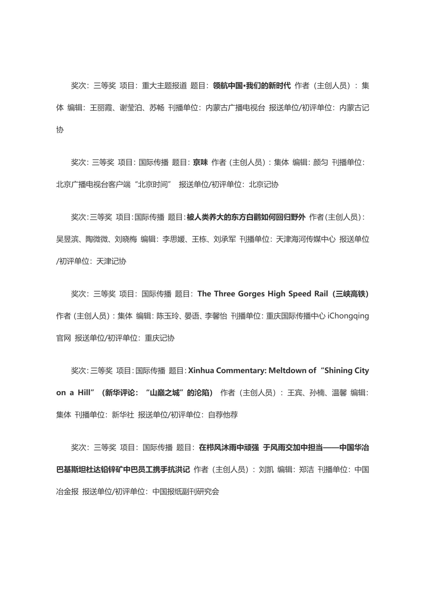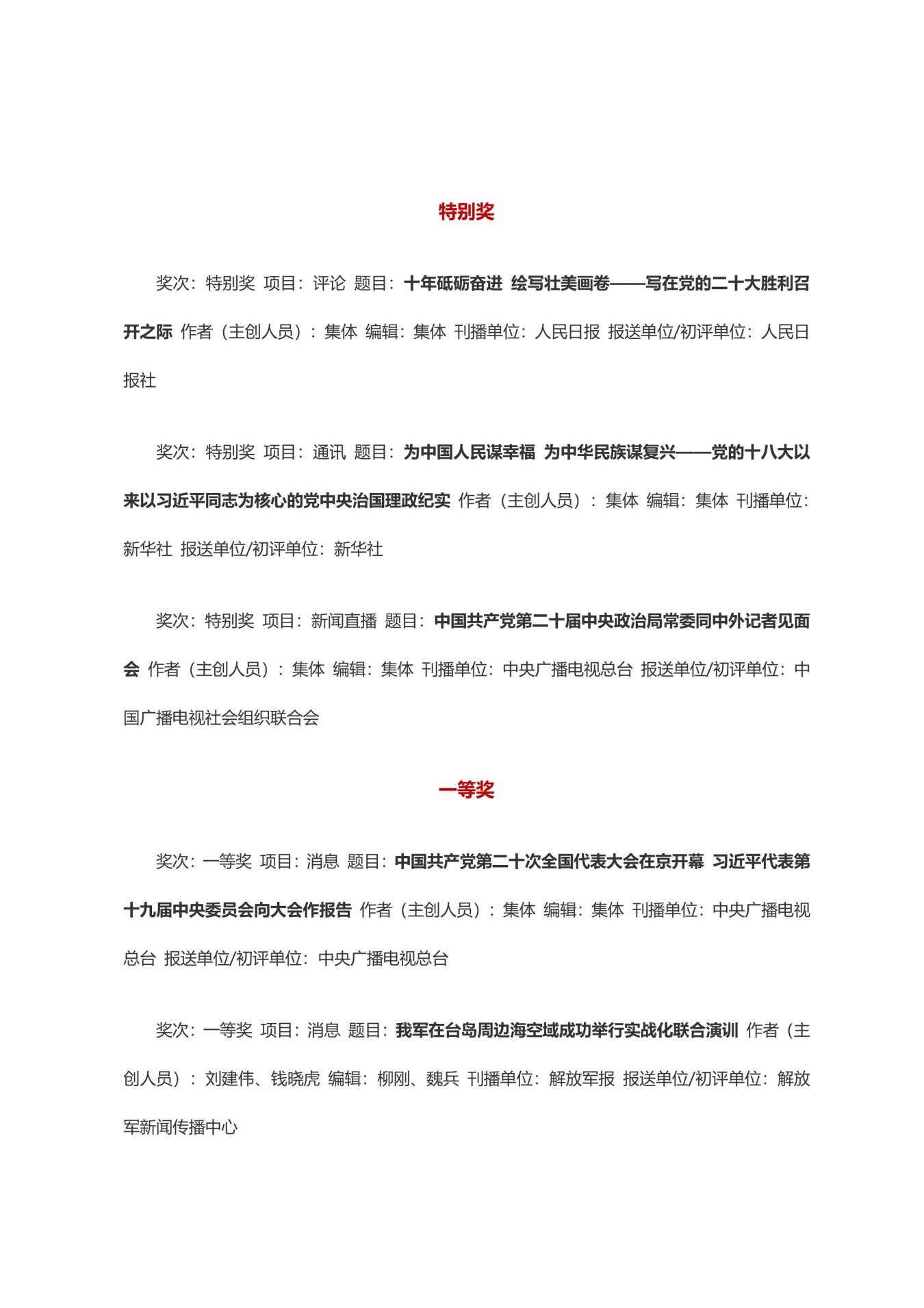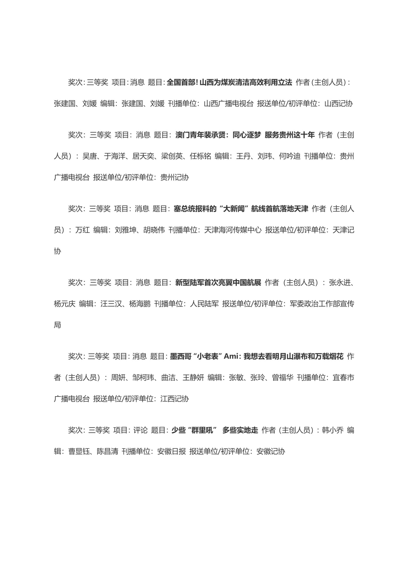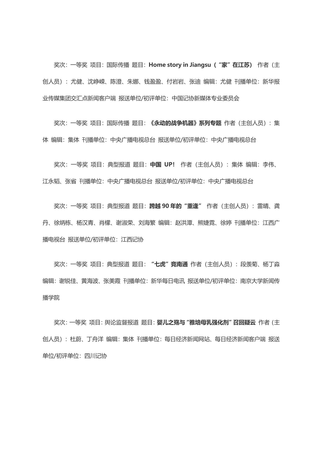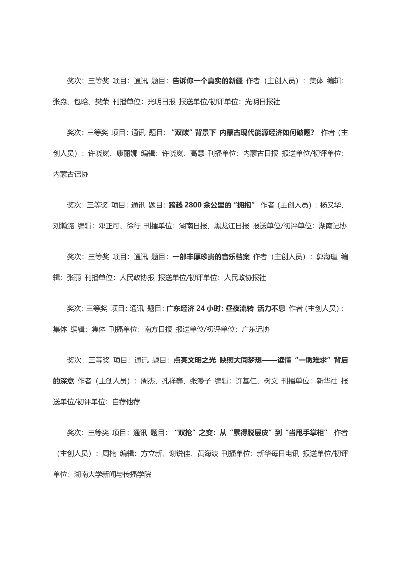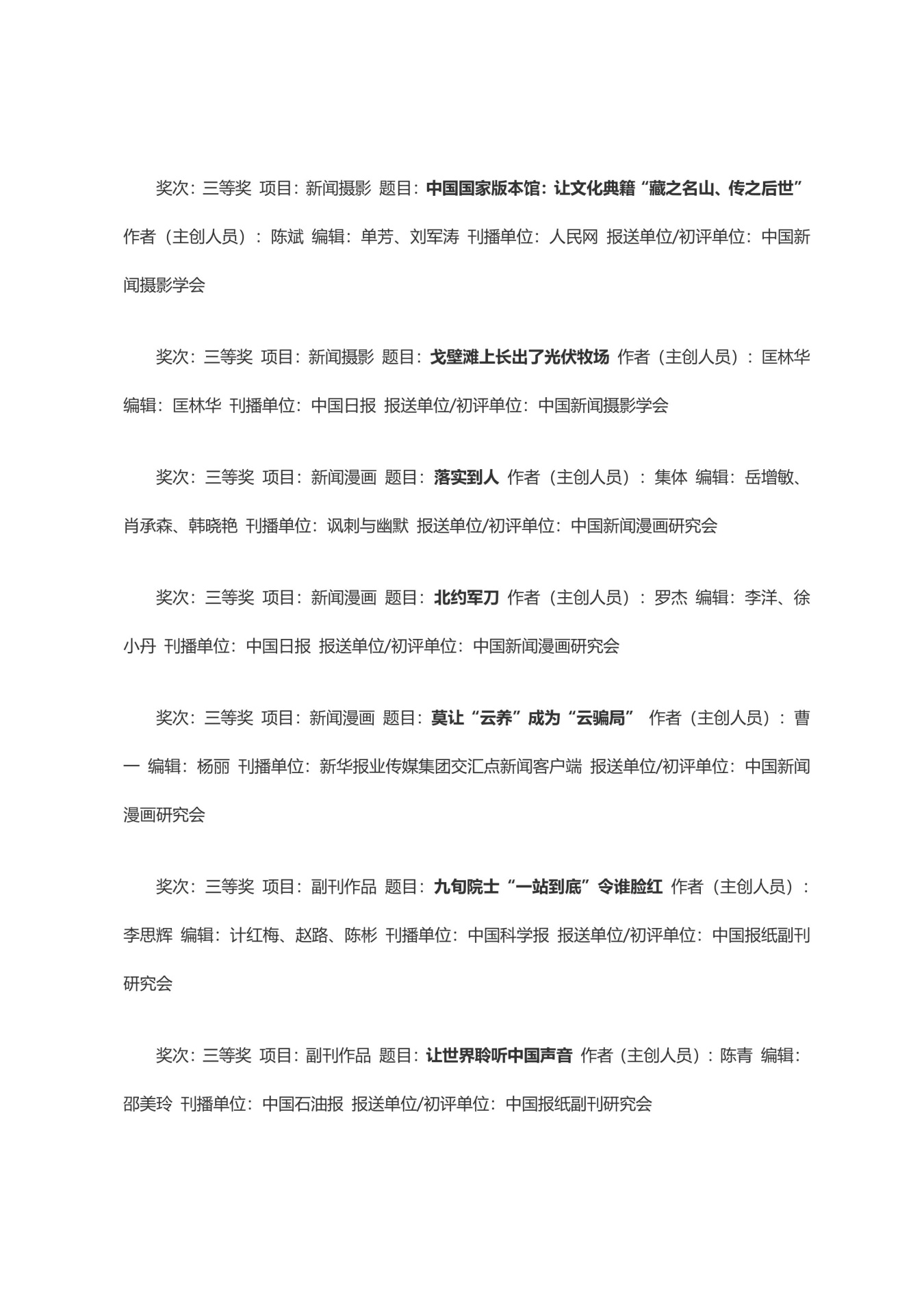第三十三届中国新闻奖获奖作品目录