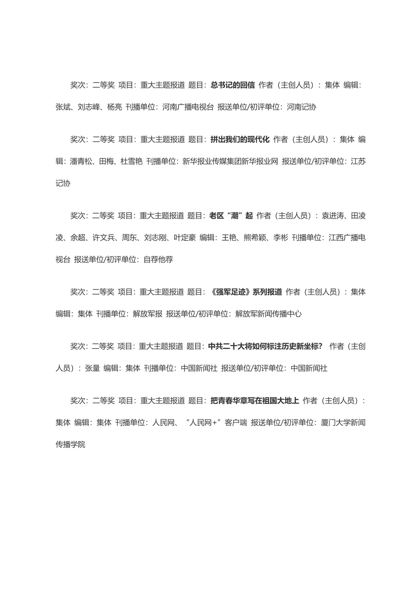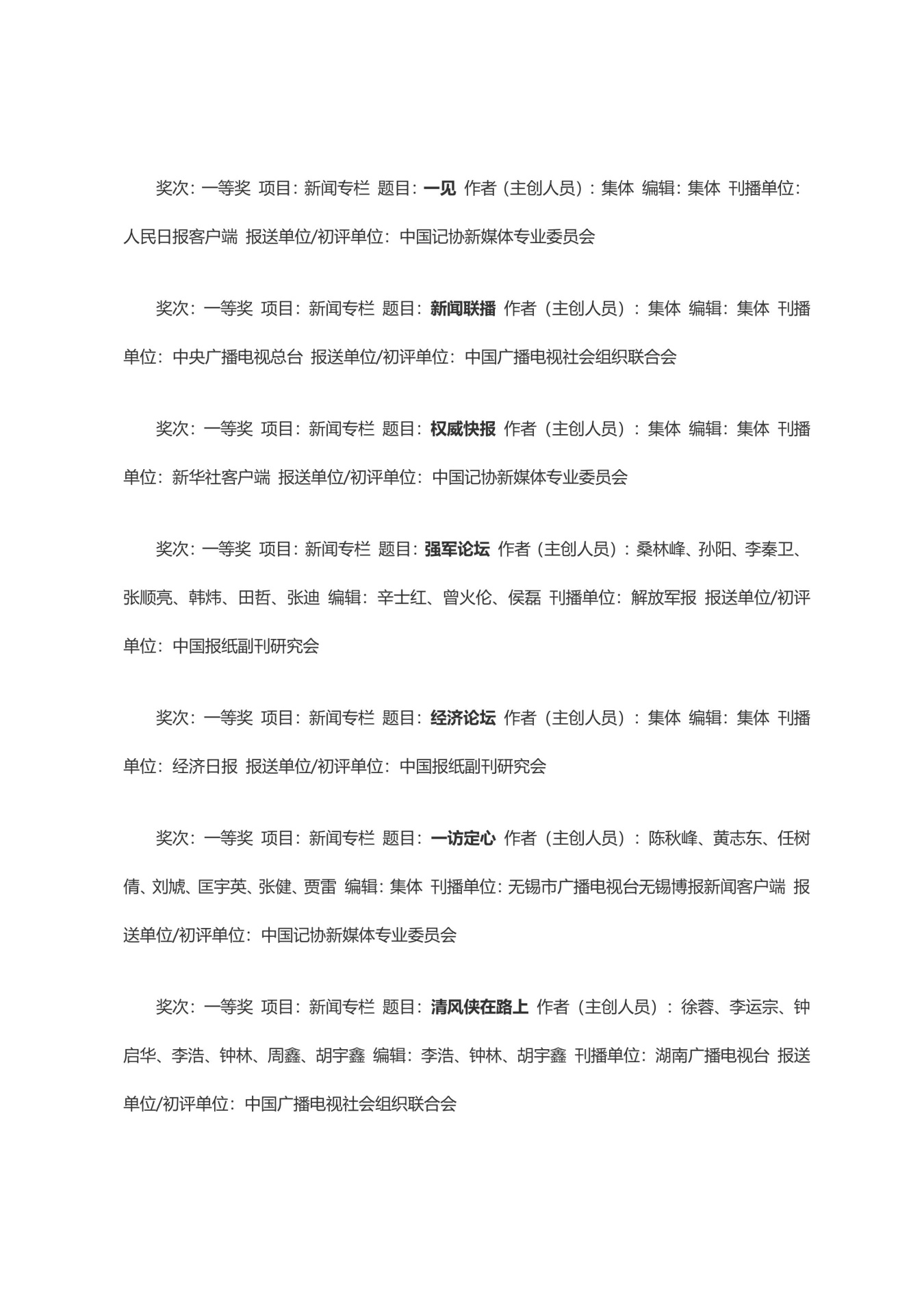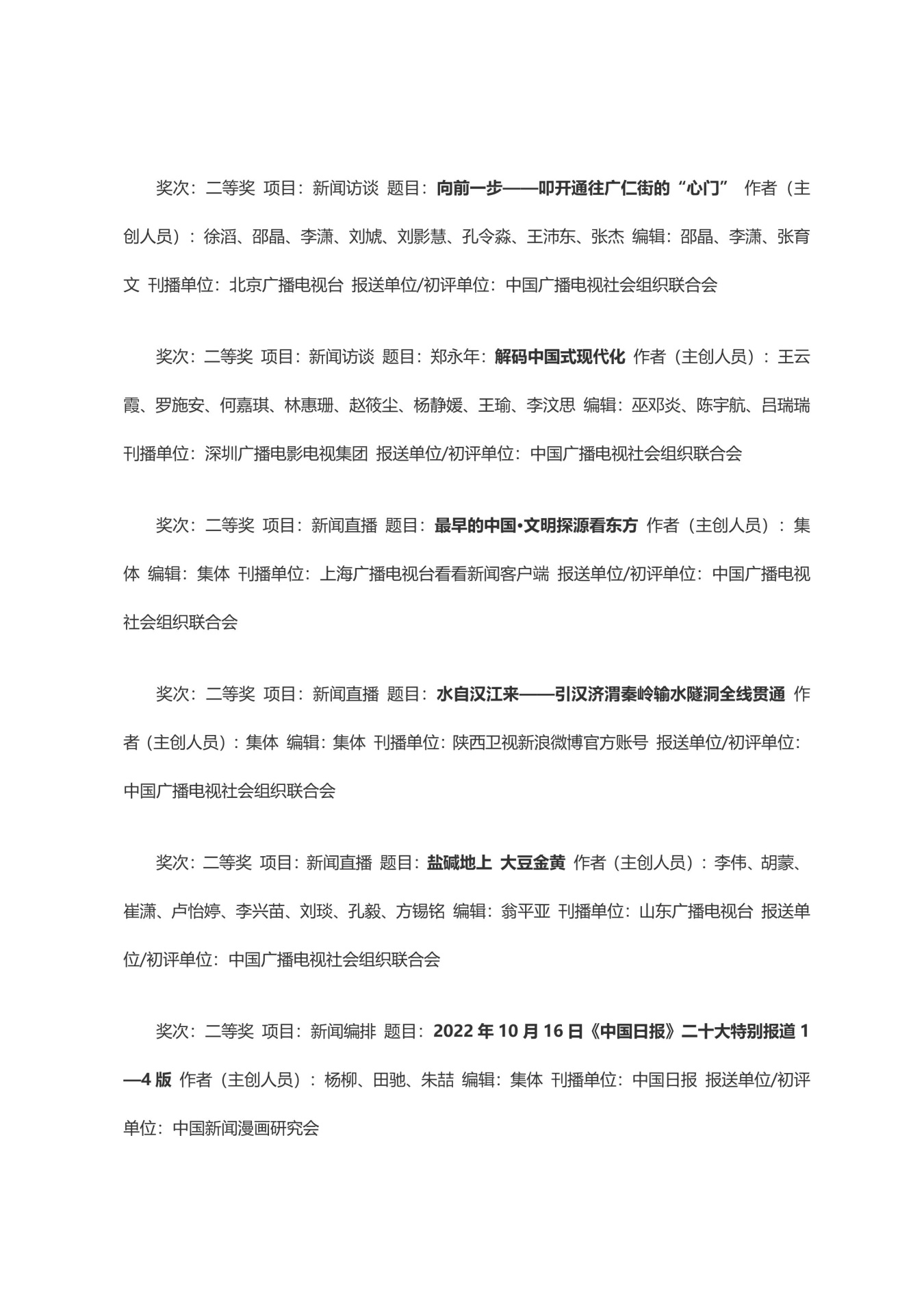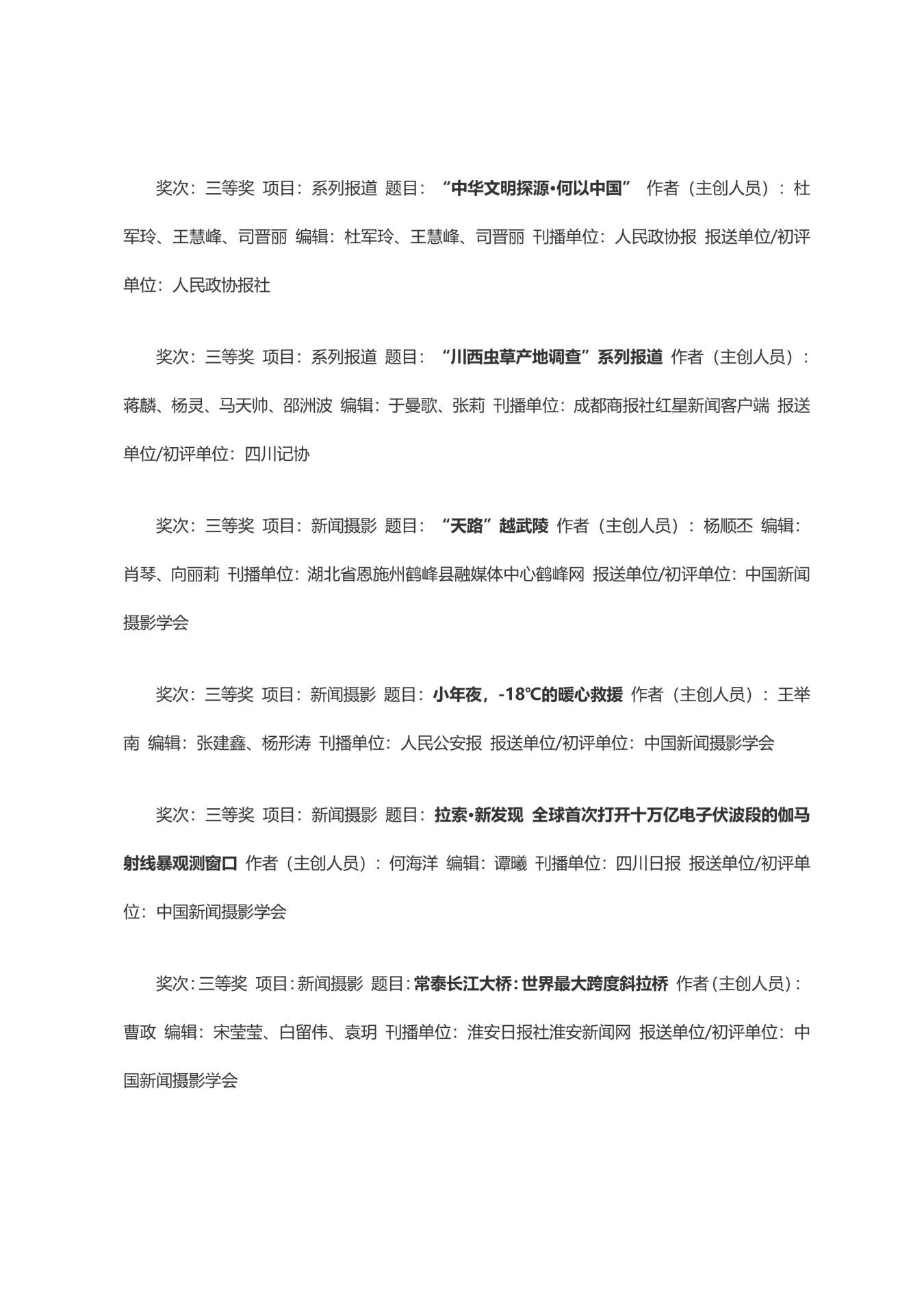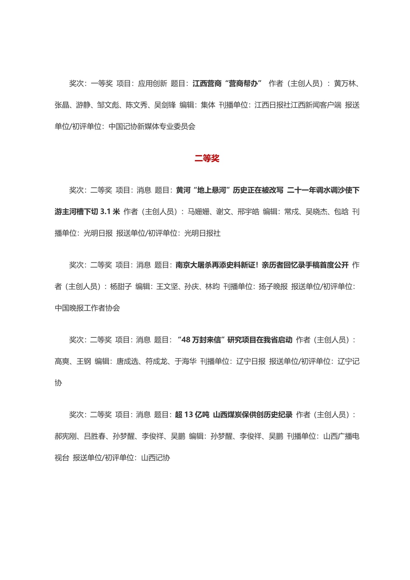 第三十三届中国新闻奖获奖作品目录