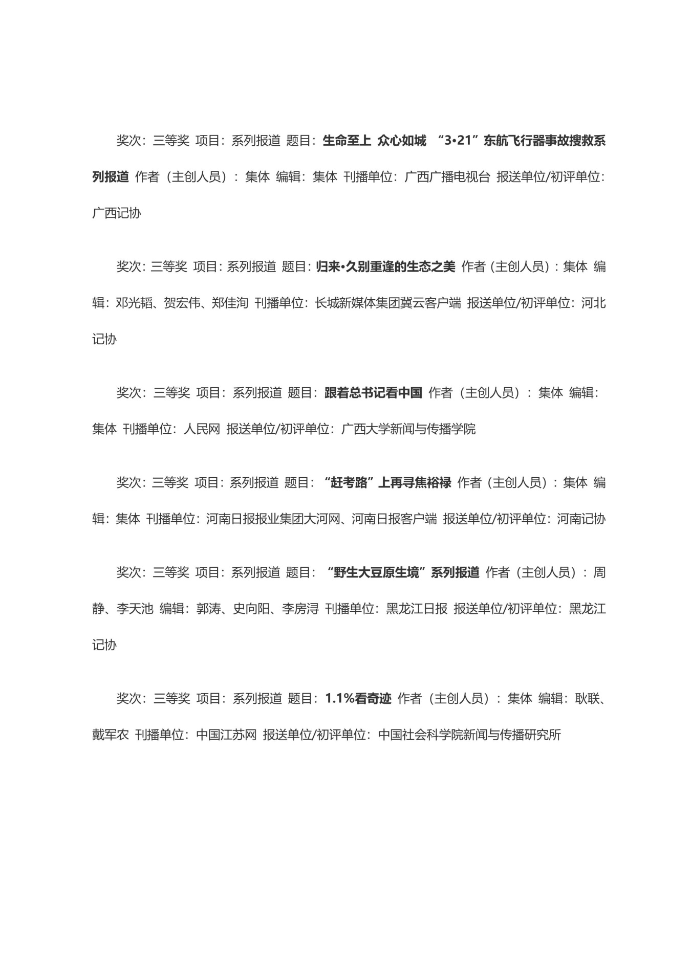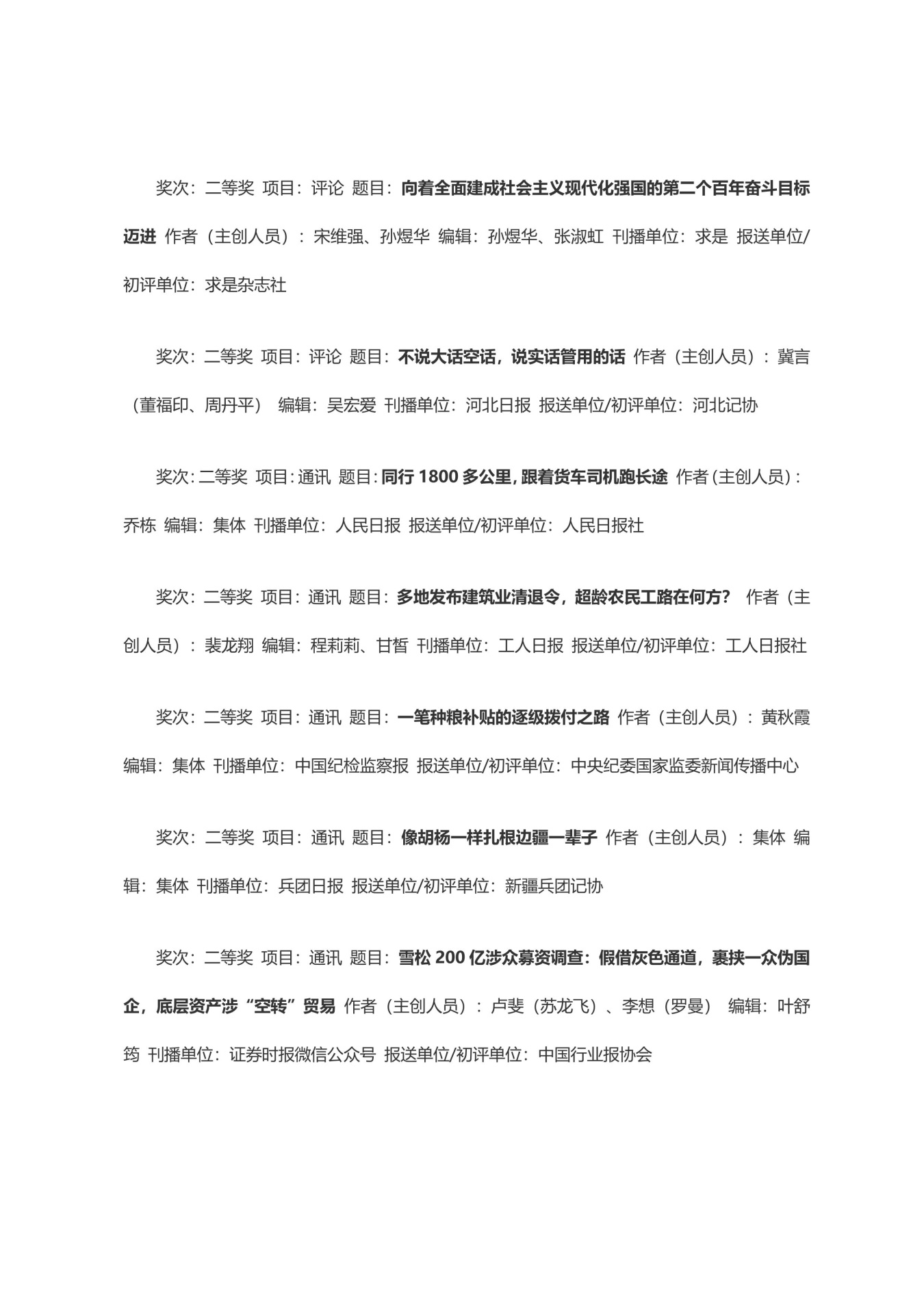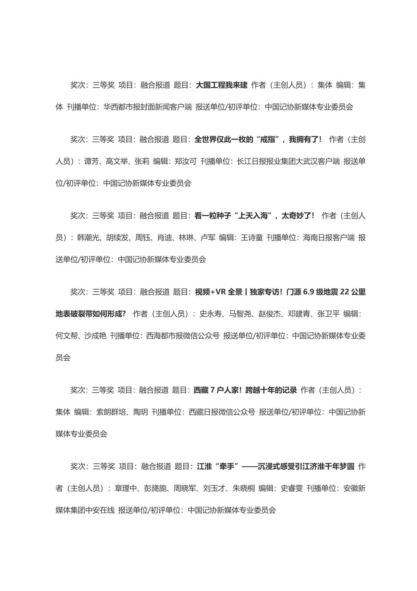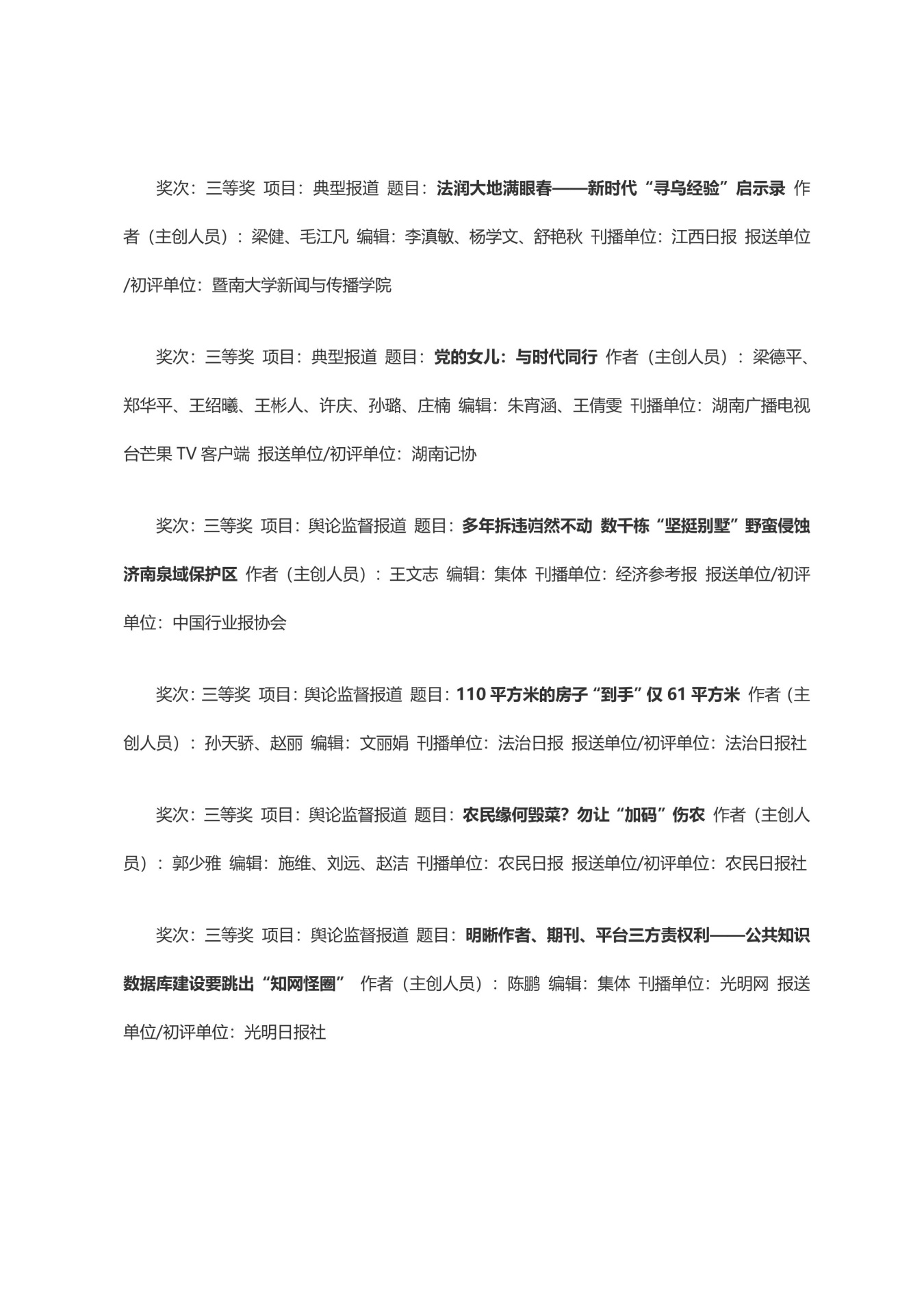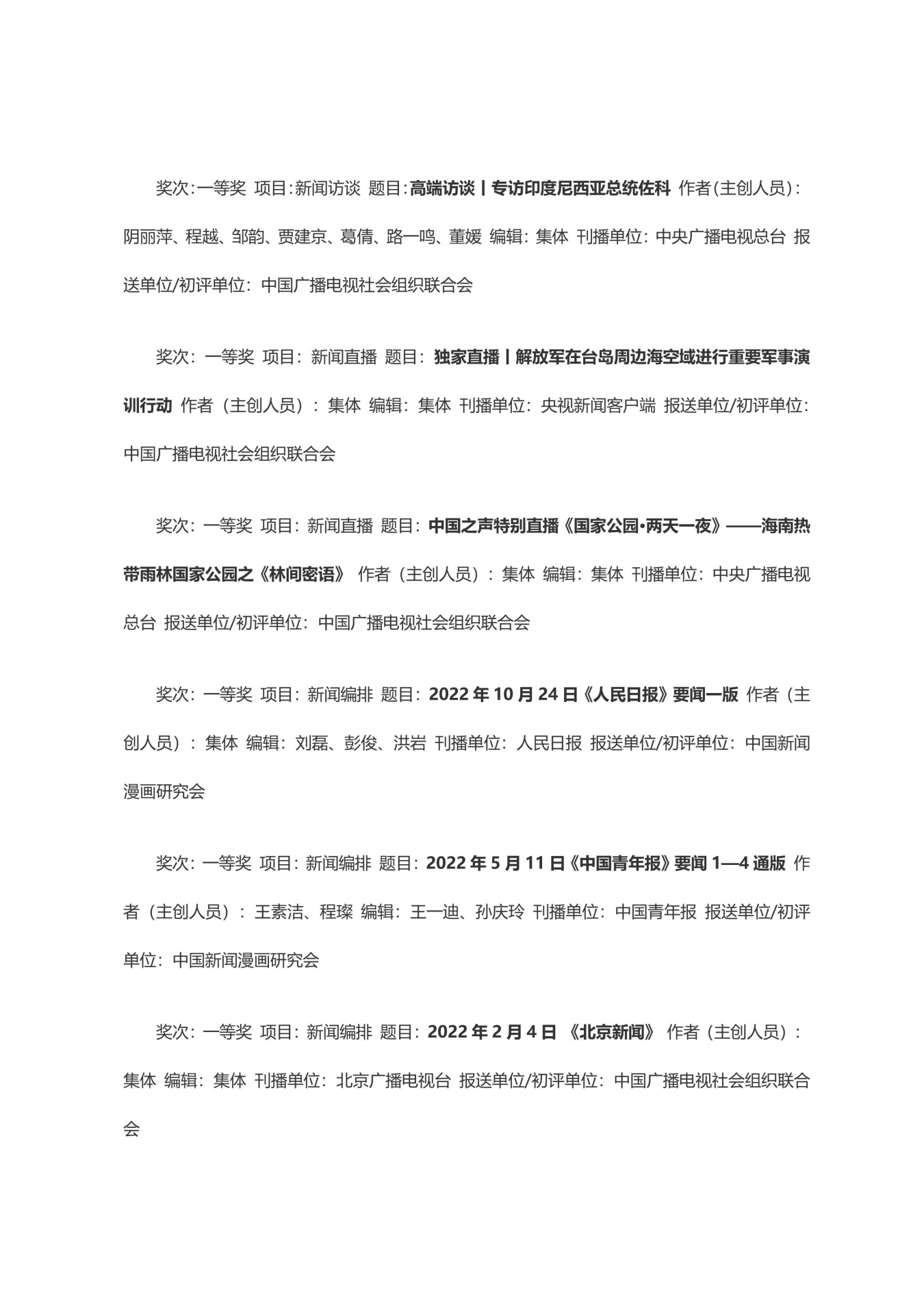 第三十三届中国新闻奖获奖作品目录