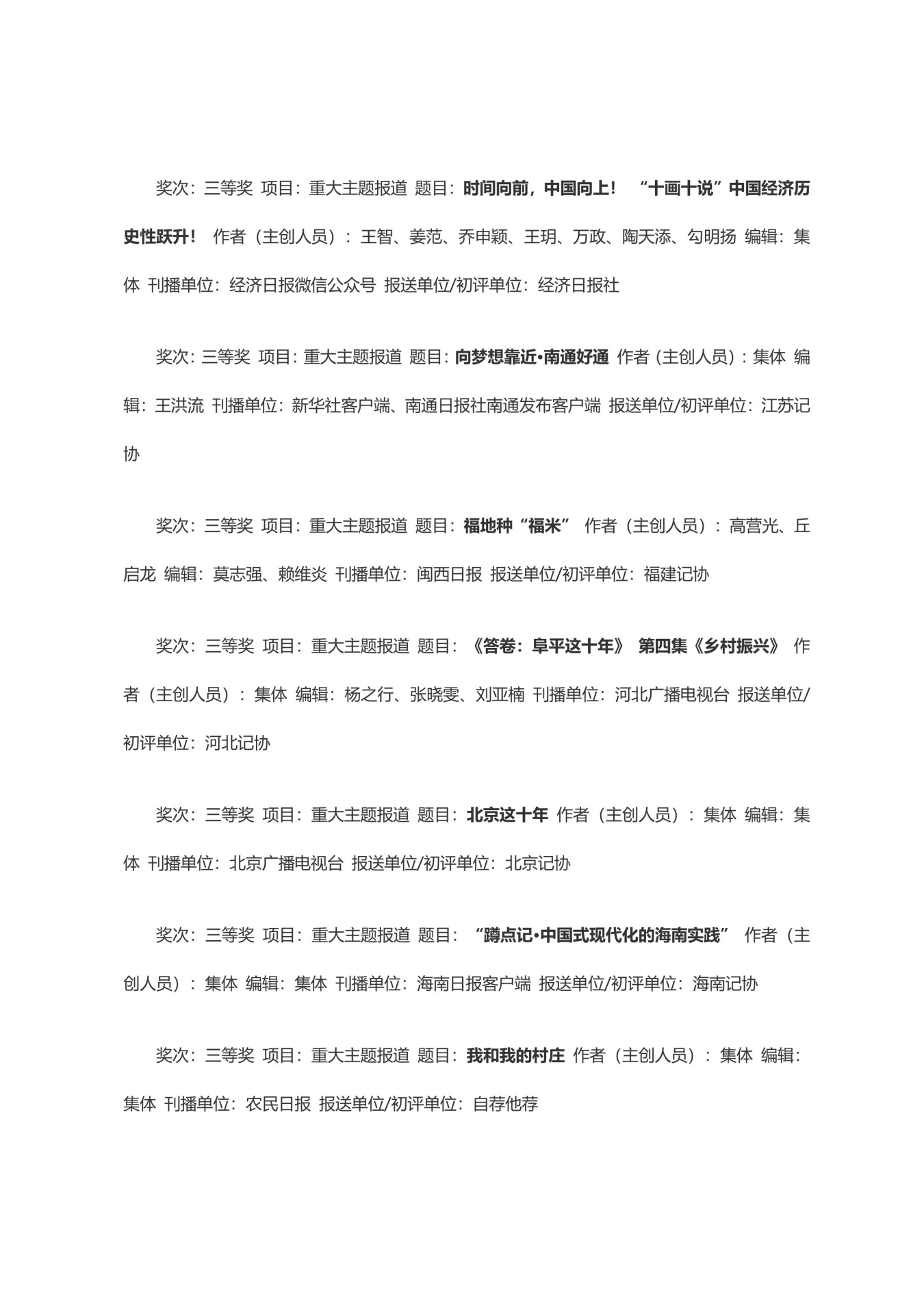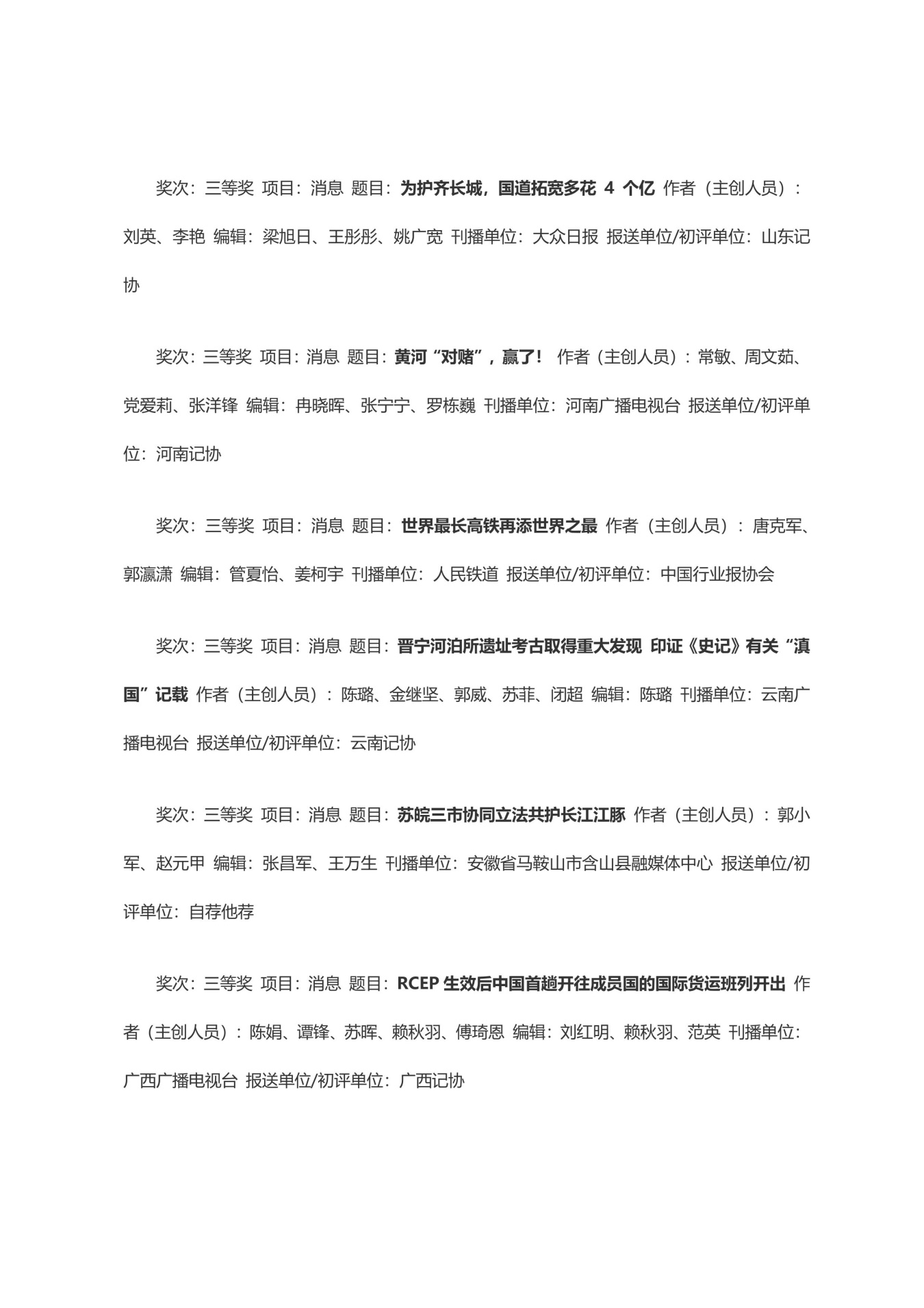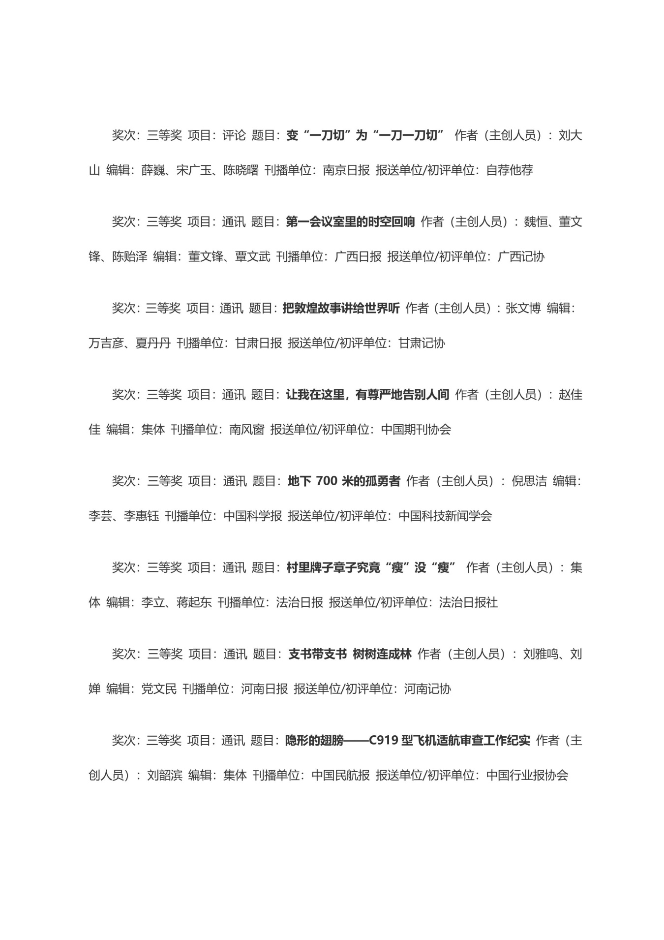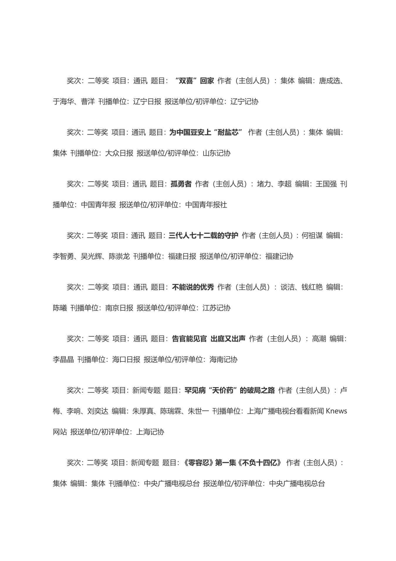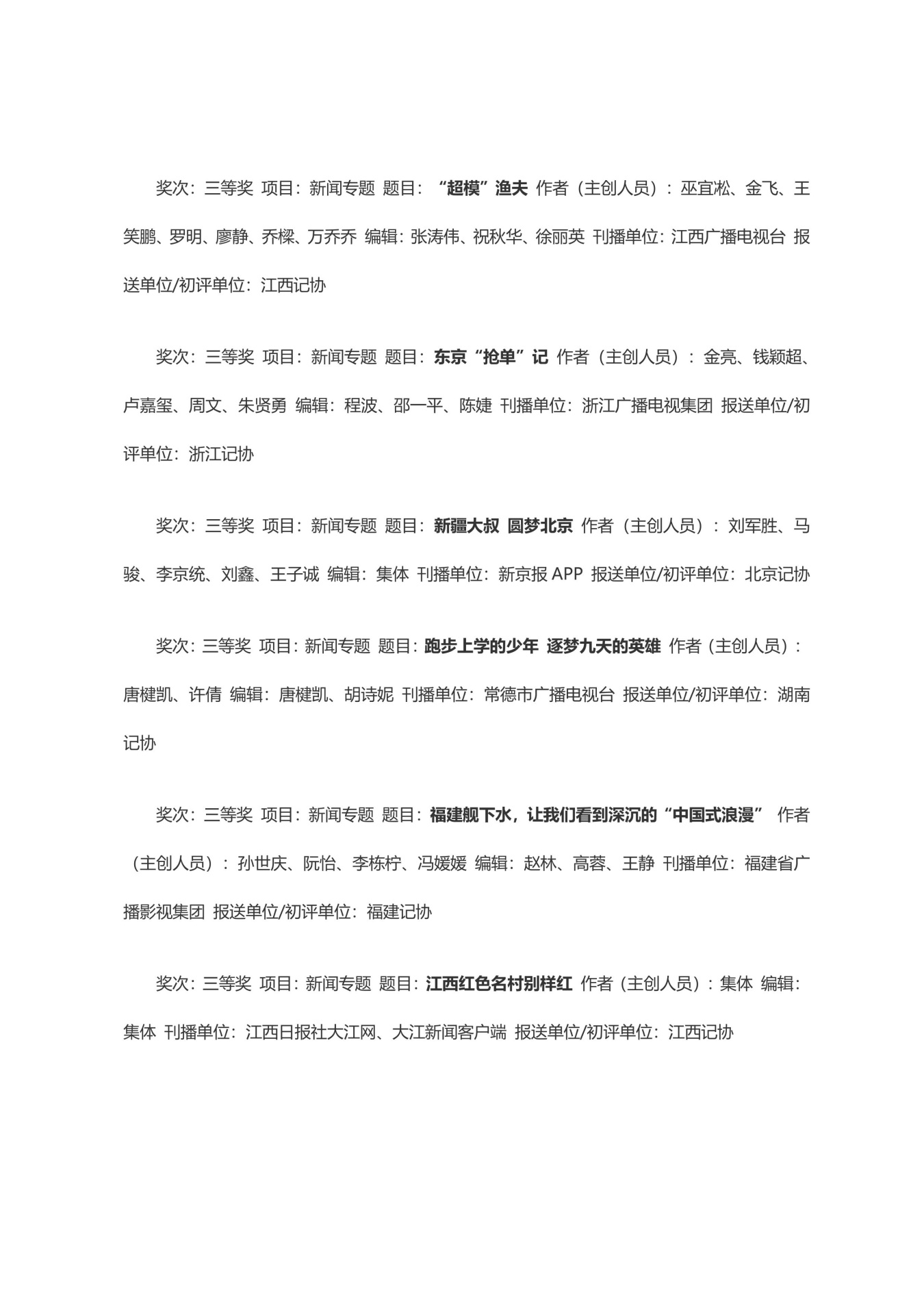 第三十三届中国新闻奖获奖作品目录