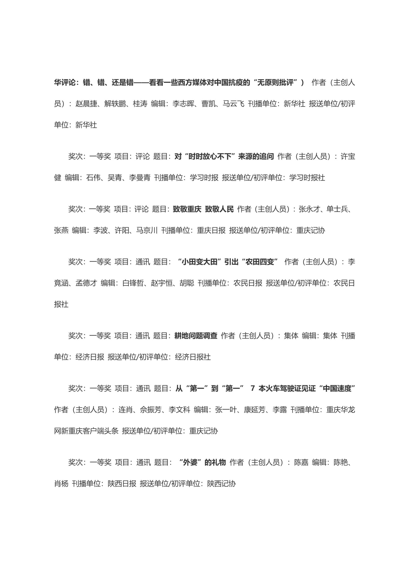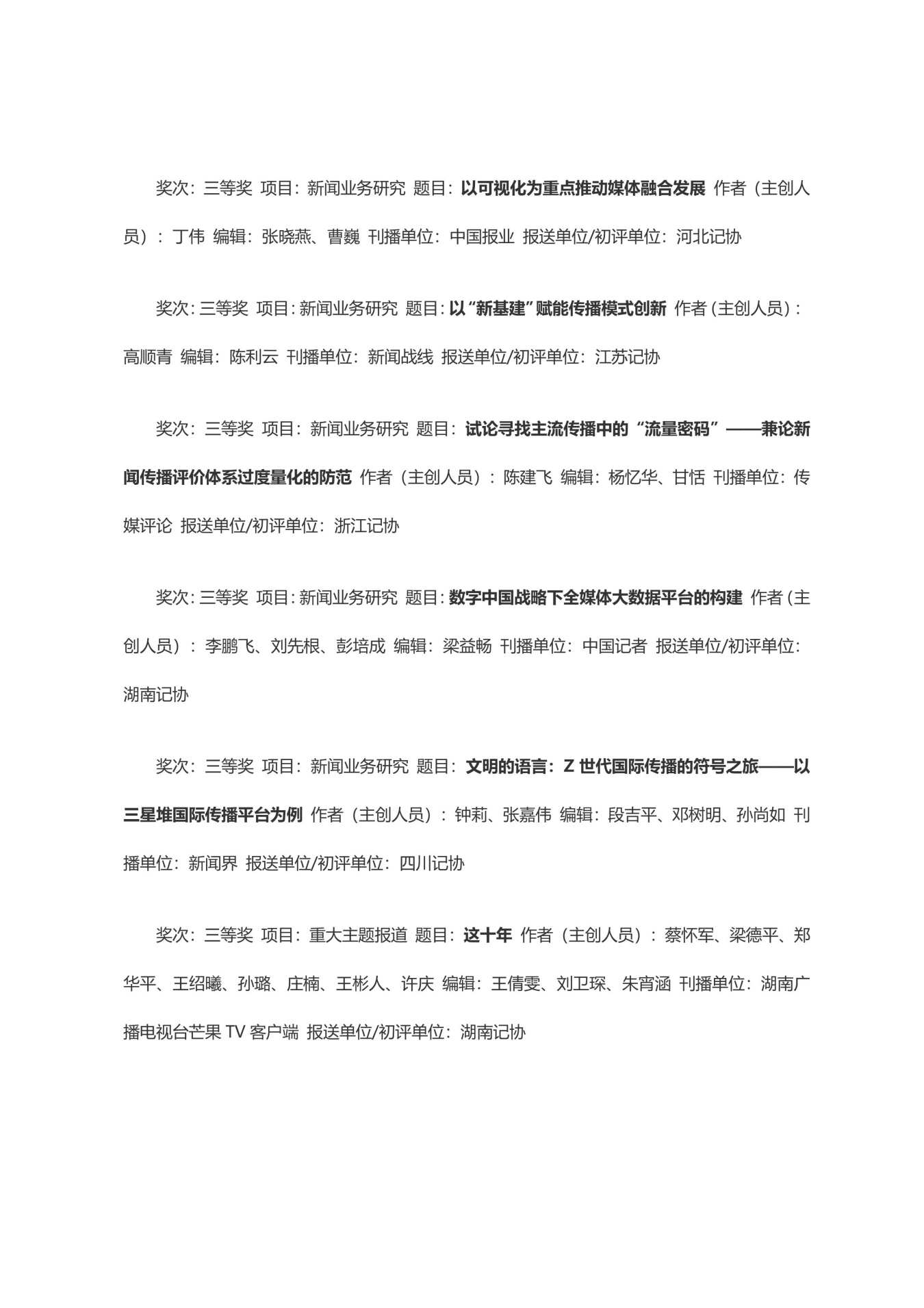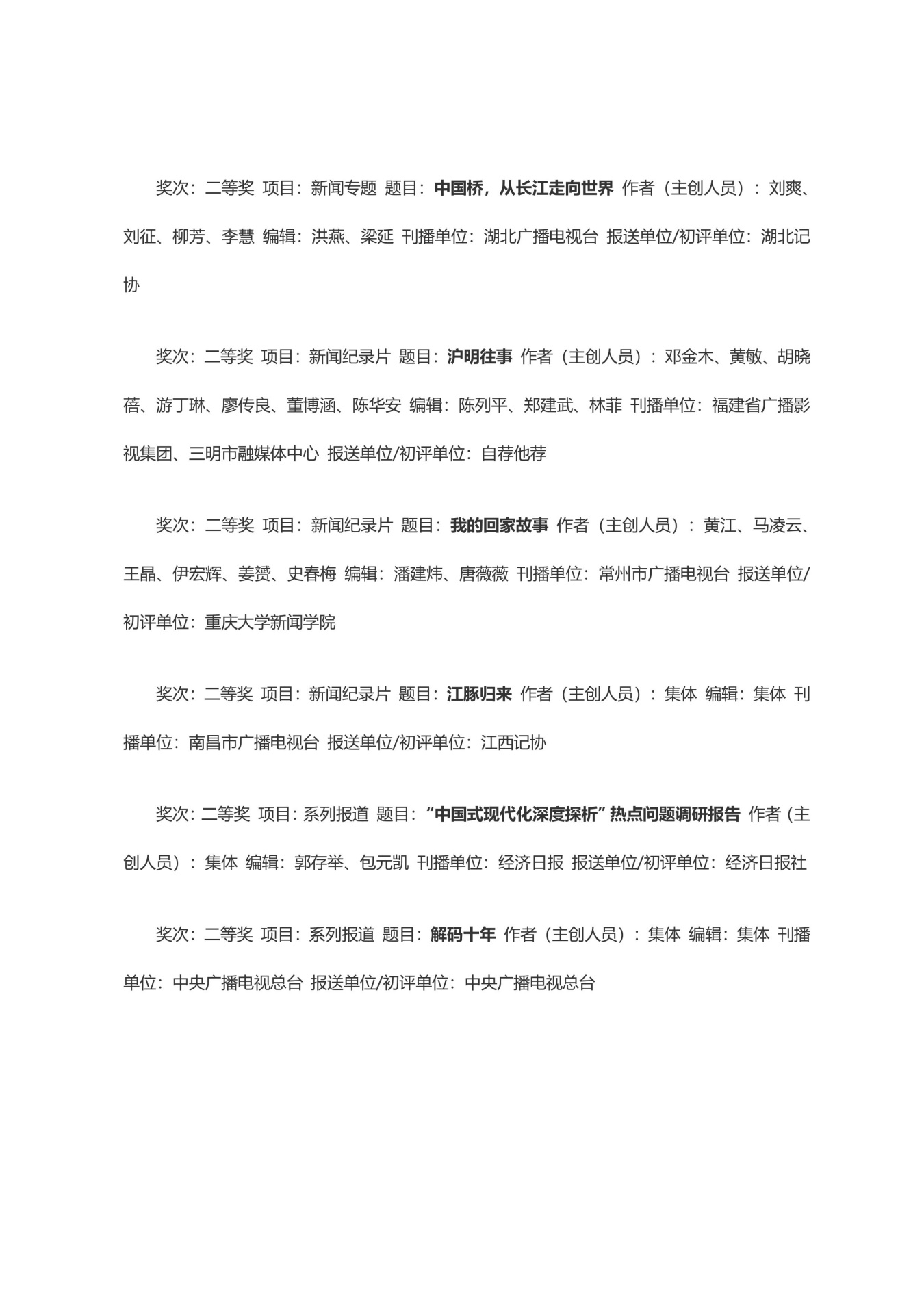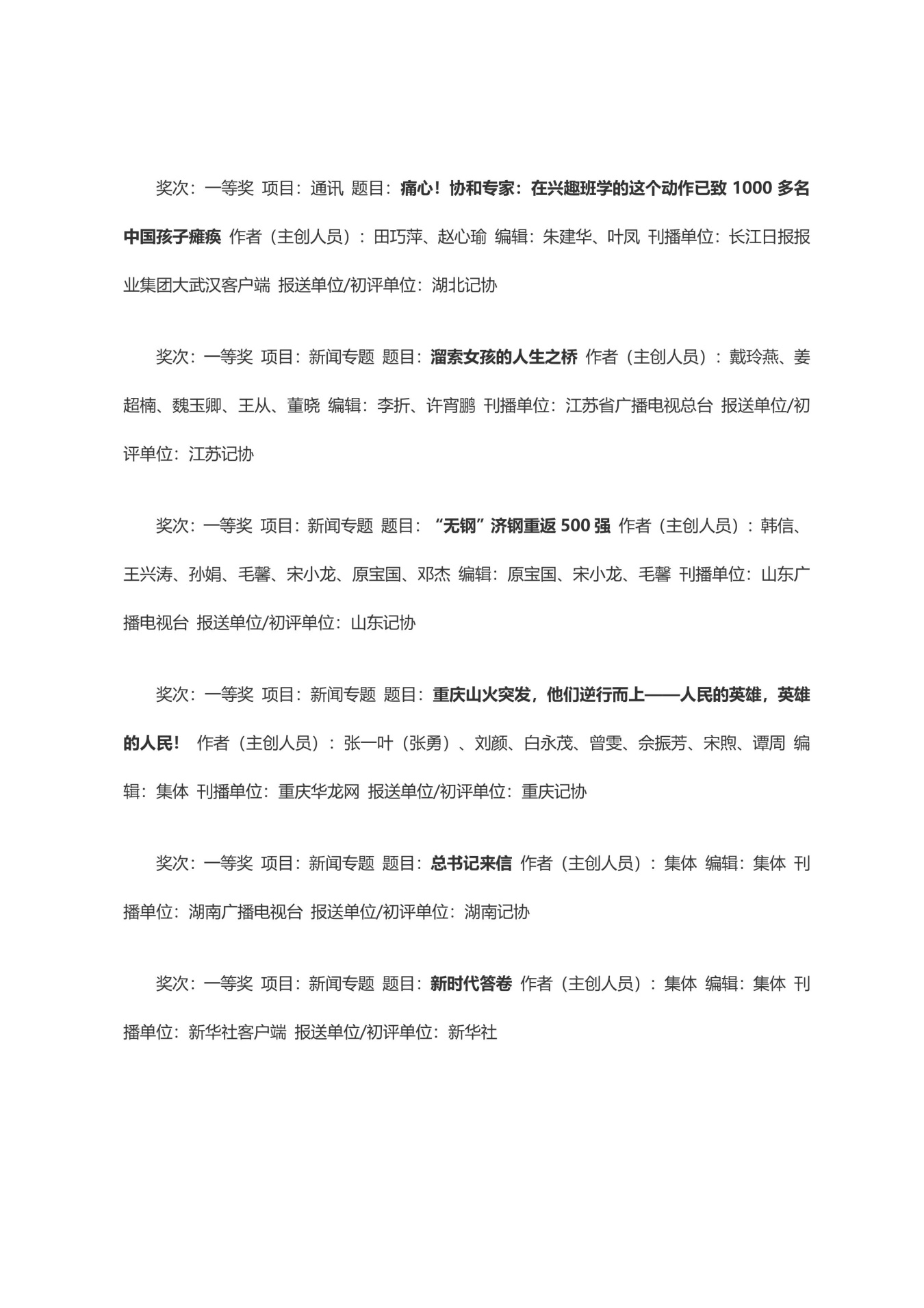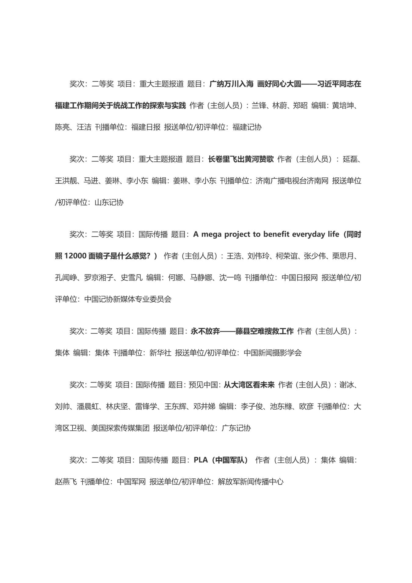 第三十三届中国新闻奖获奖作品目录